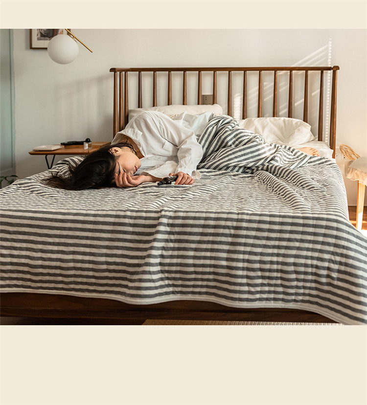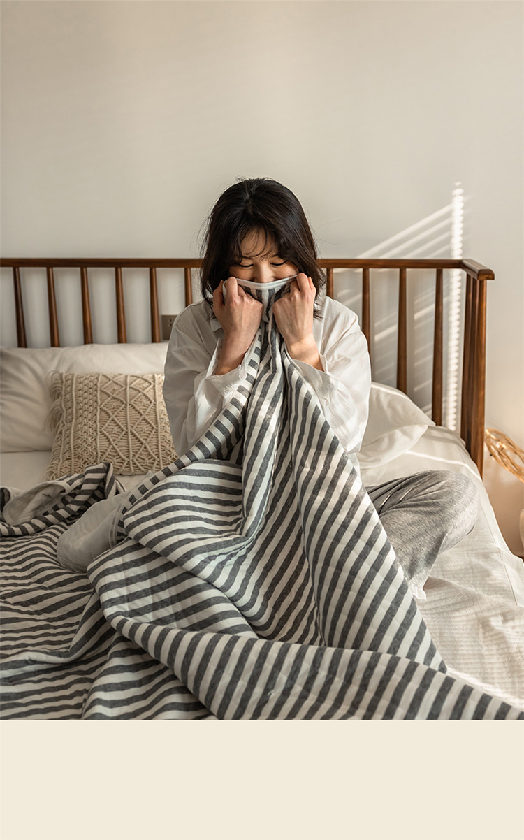 新款 全棉针织棉夏被 天竺棉夏凉被 灰色条纹