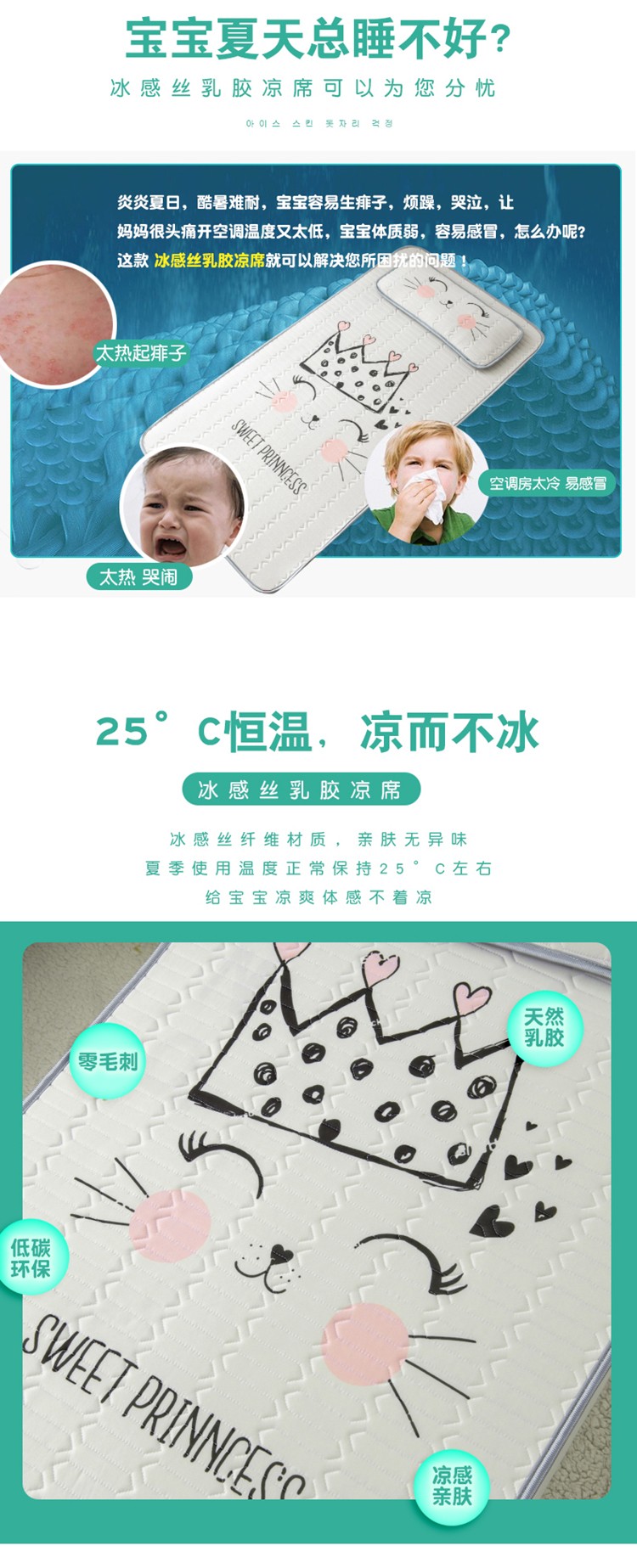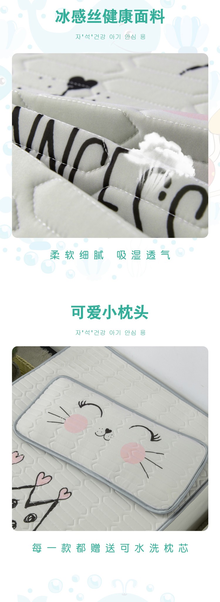 商品名称:小芽 2024新款儿童冰感丝乳胶凉席床款 皇冠喵喵