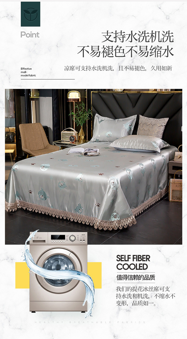 (总)朗莎家纺 600D冰丝色织提花冰丝席三件套