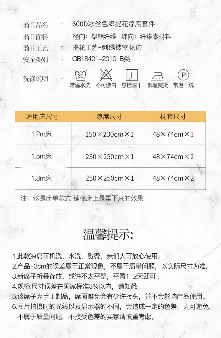 商品名称:(总)朗莎家纺 600D冰丝色织提花冰丝席三件套