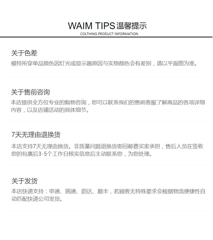 云仓服务3:享急速发货,18点之前下单,2小时内发货,保证发货时效;