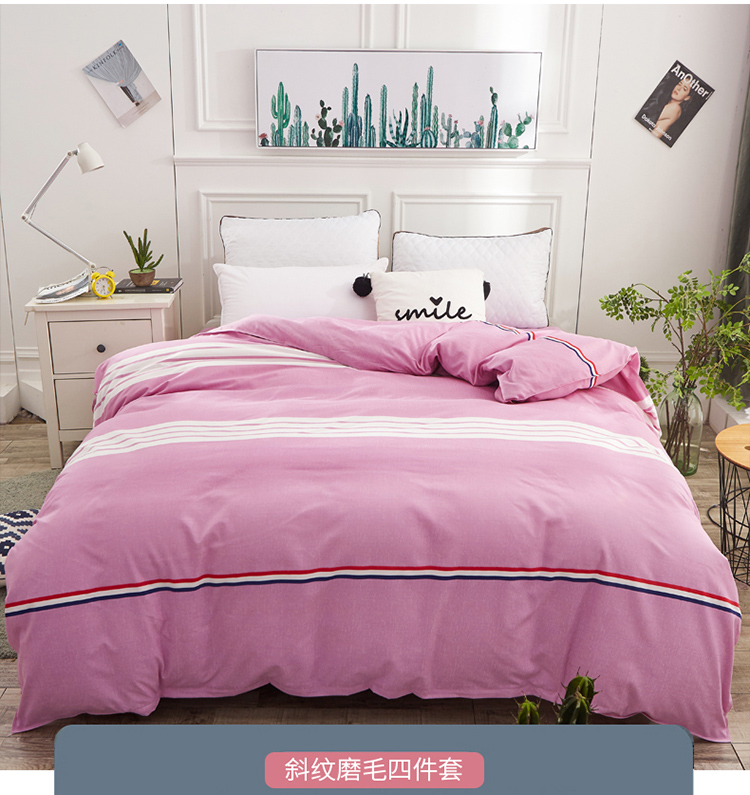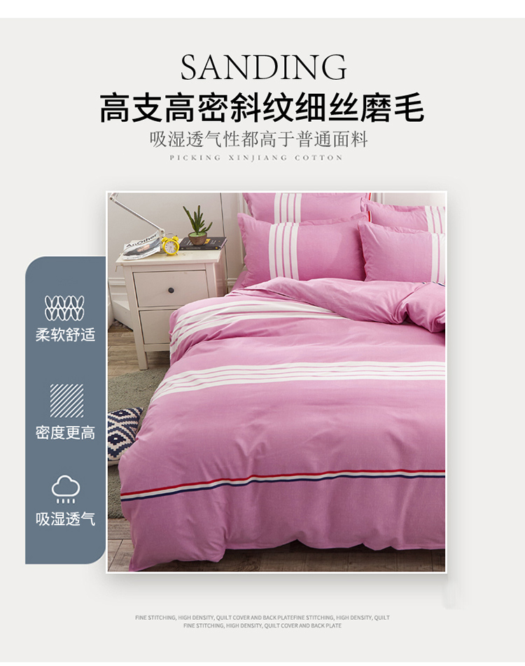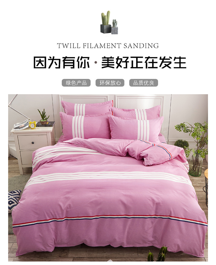 商品名称:艾裙海 2020新款斜纹加厚单被套 格条时代-粉
