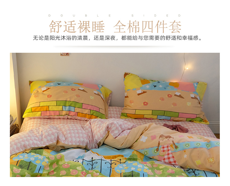 (总)窝米 2020春夏新品全棉13372四件套小波西风系列,草莓酱,木槿,小花花,小尤里