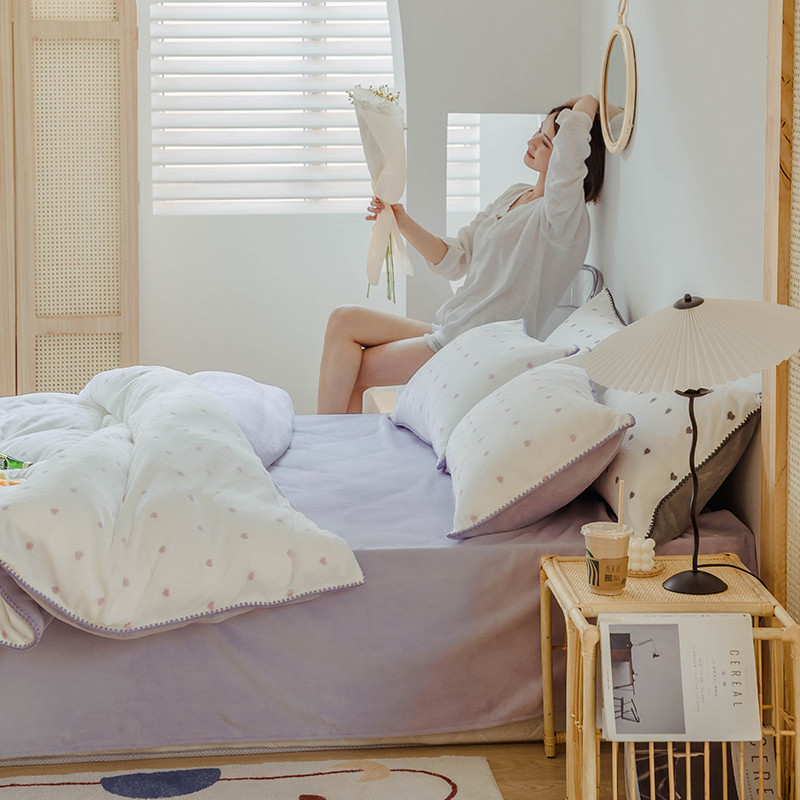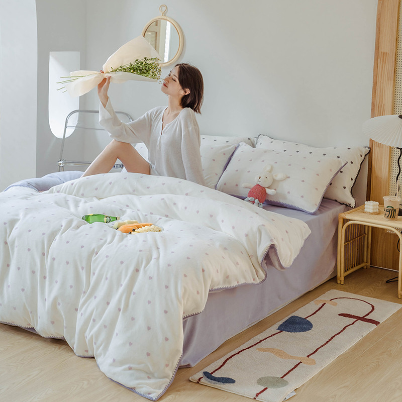 狠狠爱 2020新款小清新牛奶绒四件套-小甜心 香芋粉