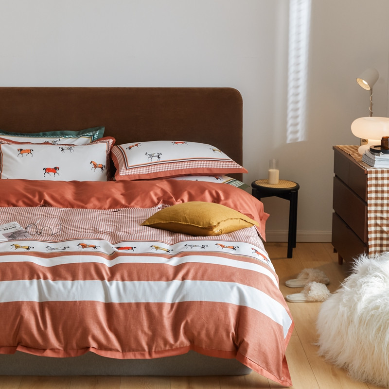 商品名称:优然居 2021新款小边款轻奢风四件套 艾尔玛秋叶红