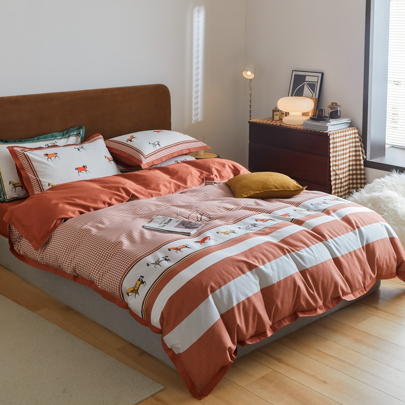 (总)优然居2020新款100支婴儿暖绒棉轻奢风刺绣四件套,大地黄加藏青,复古咖青,轻奢粉灰,霜绿大地色,霜绿复古色