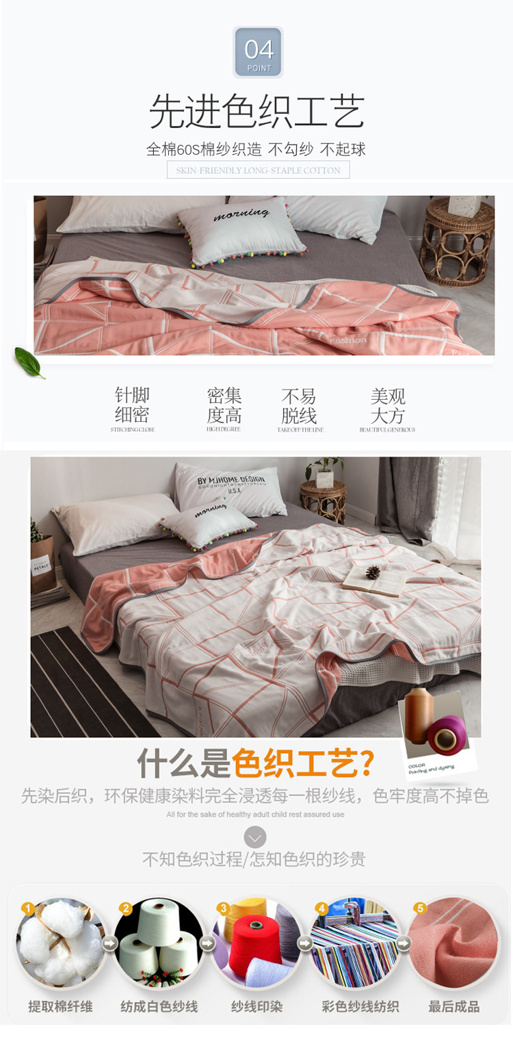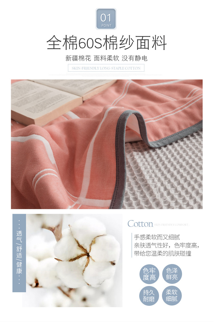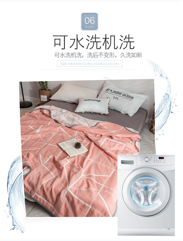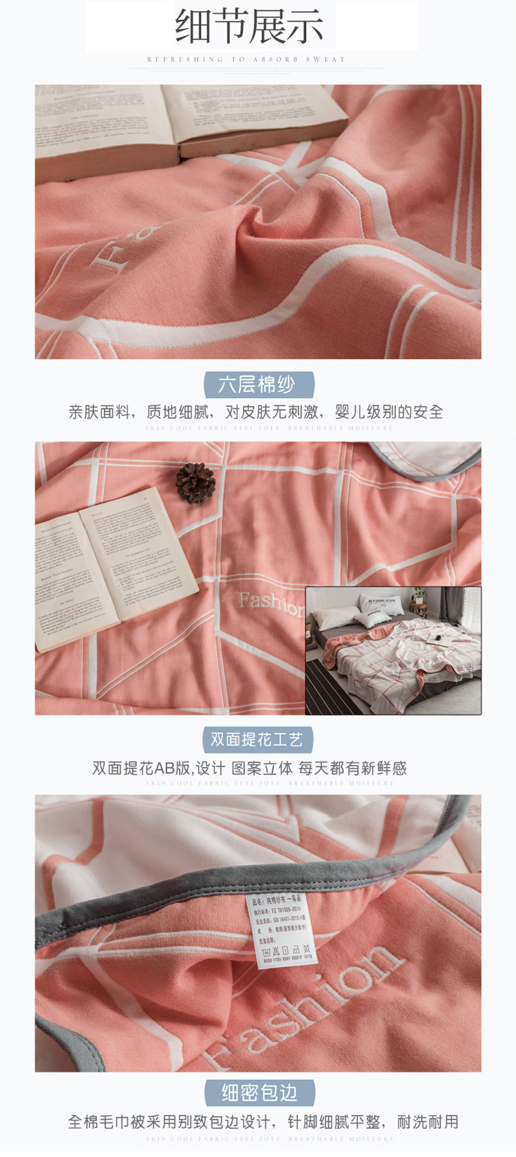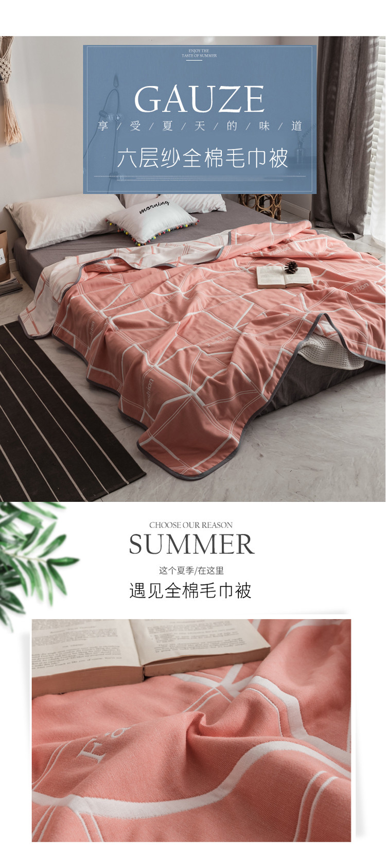 朴尔 2021新款时尚六层全棉纱布毛巾被简约粉