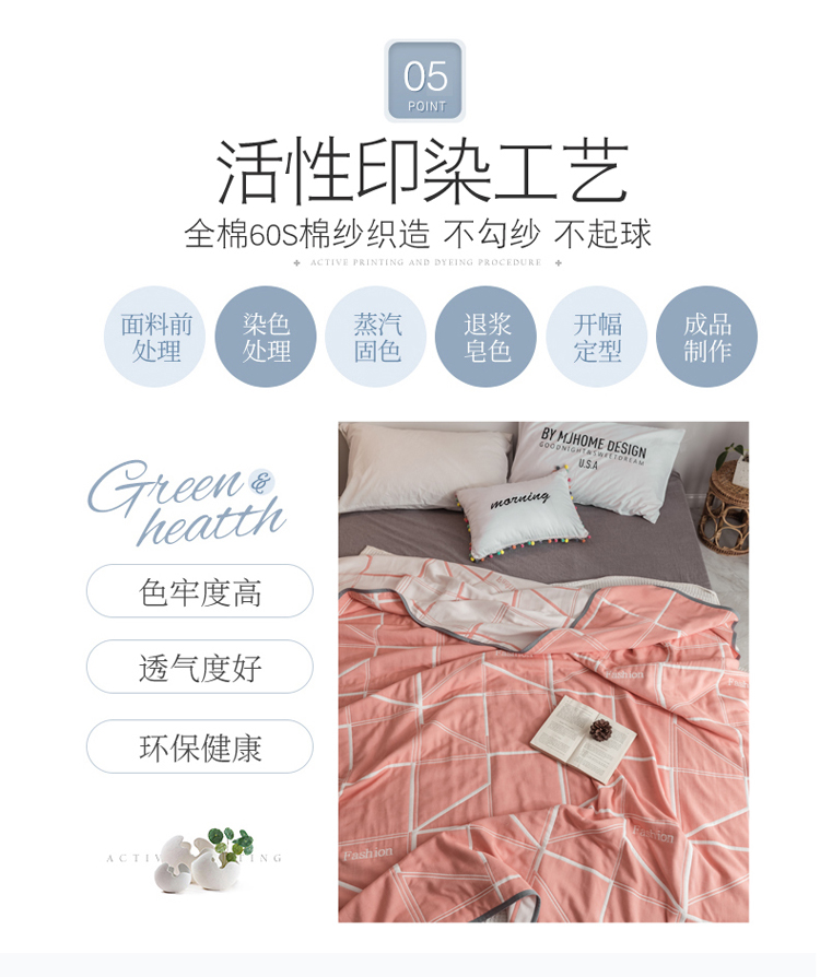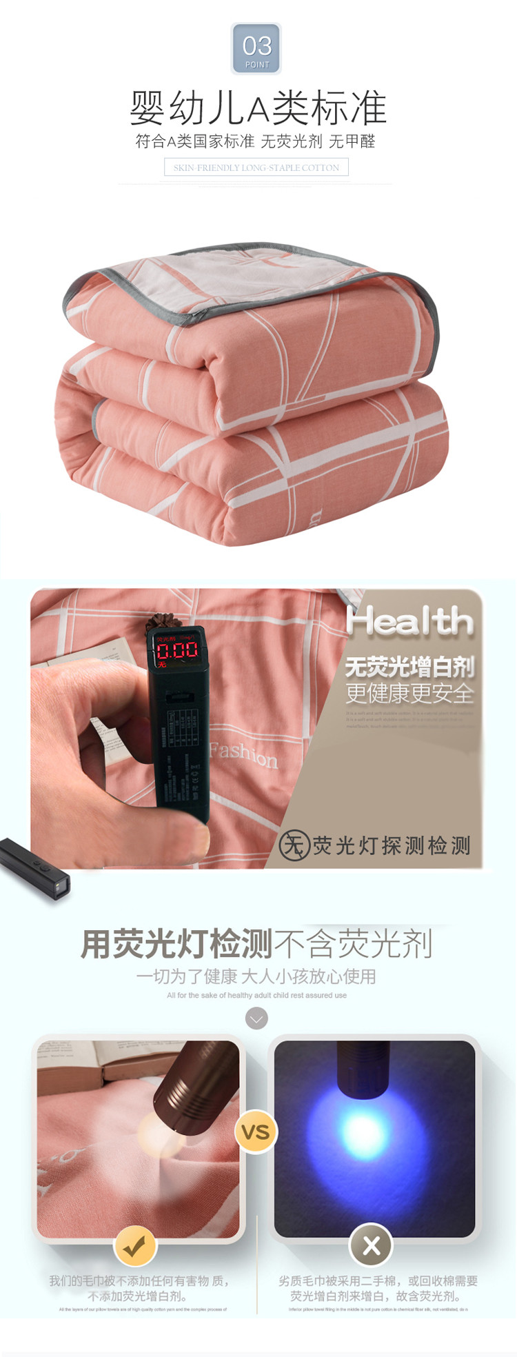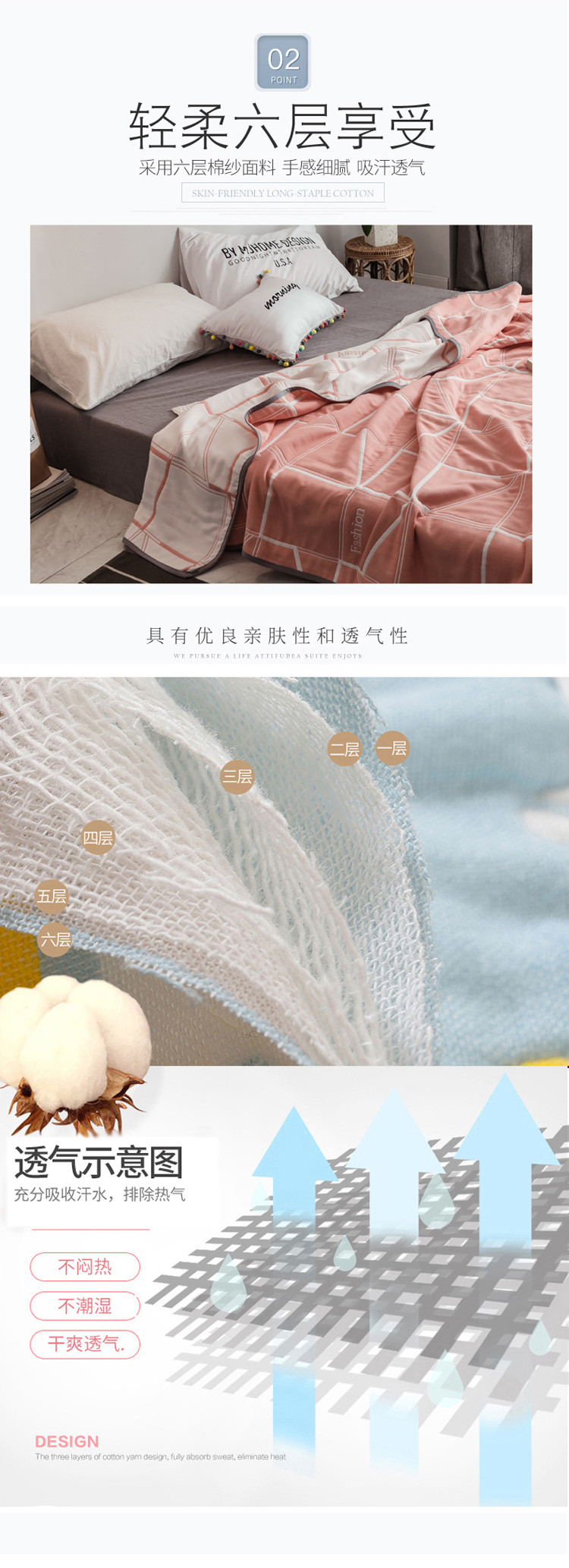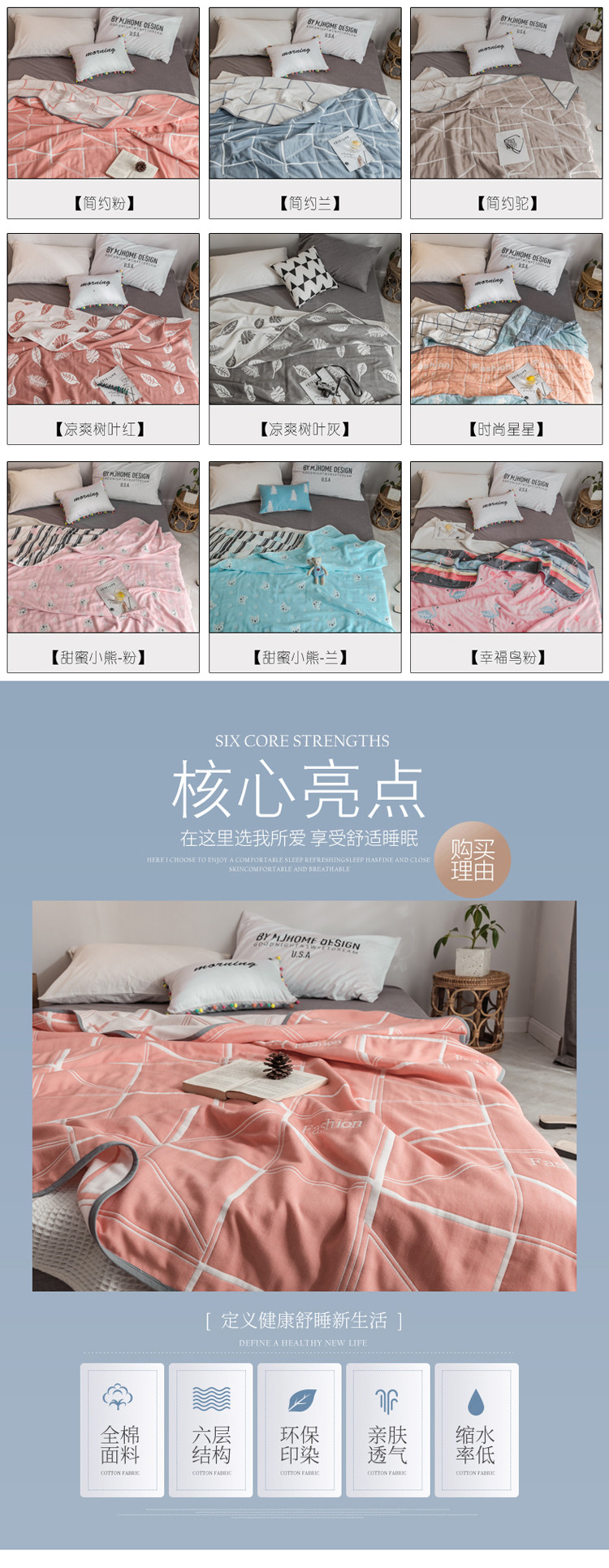 商品名称:朴尔 2021新款时尚六层全棉纱布毛巾被简约粉