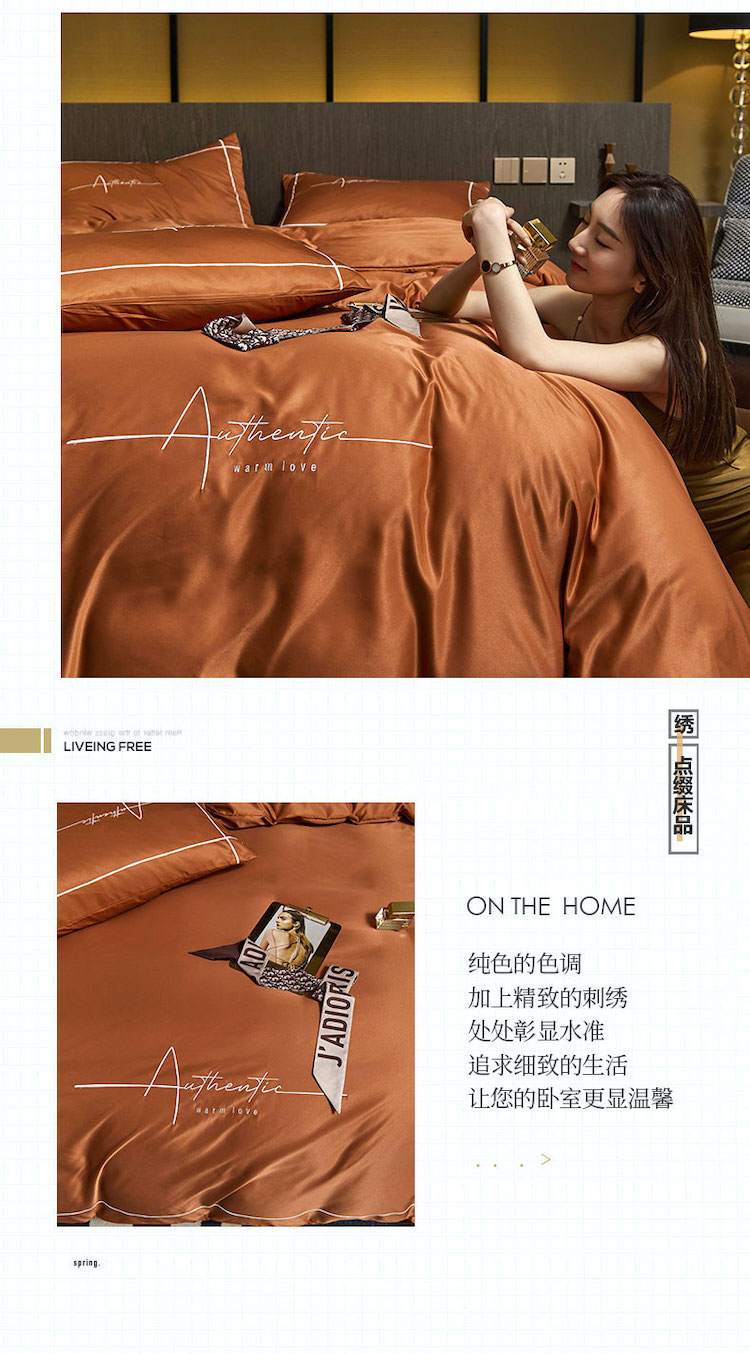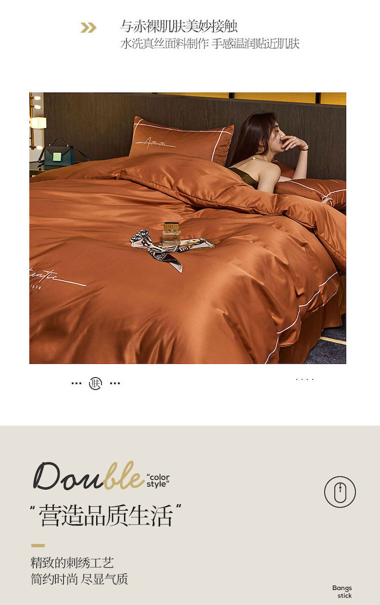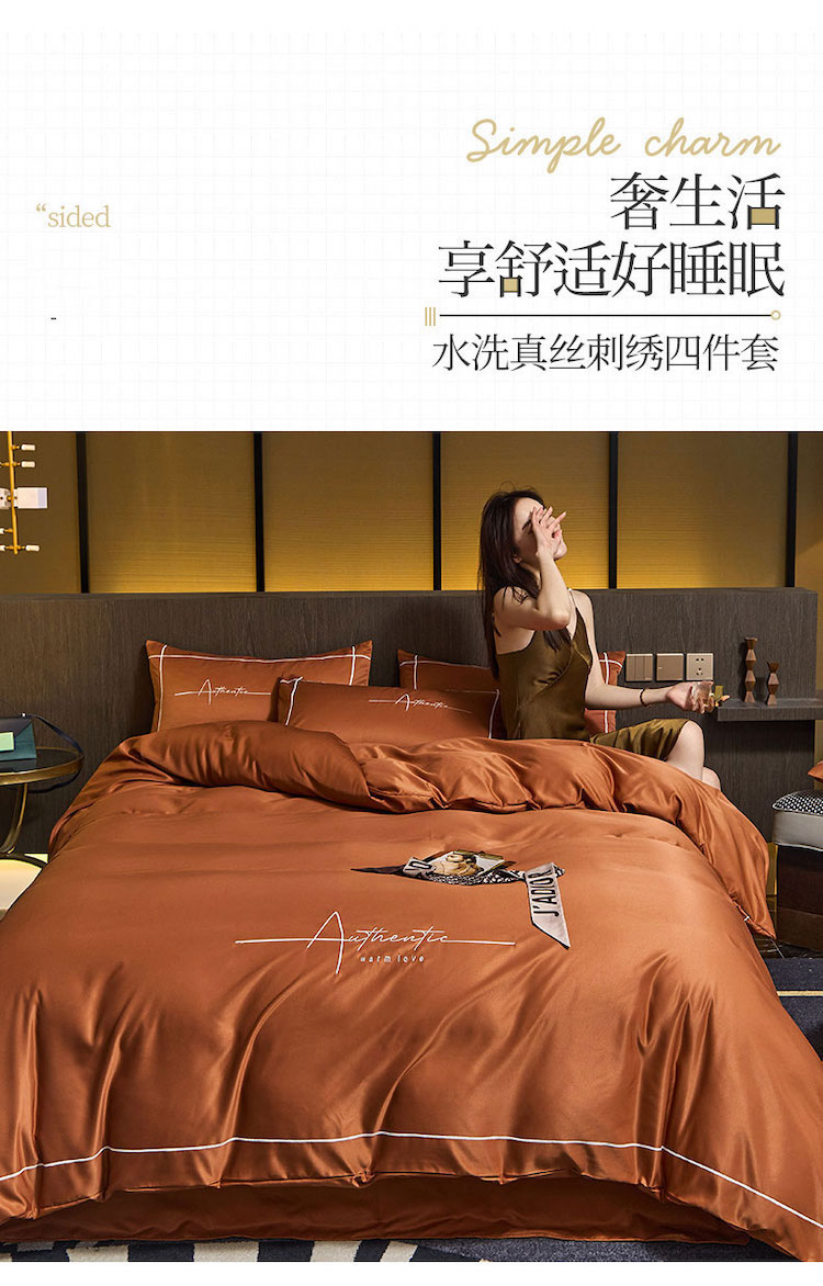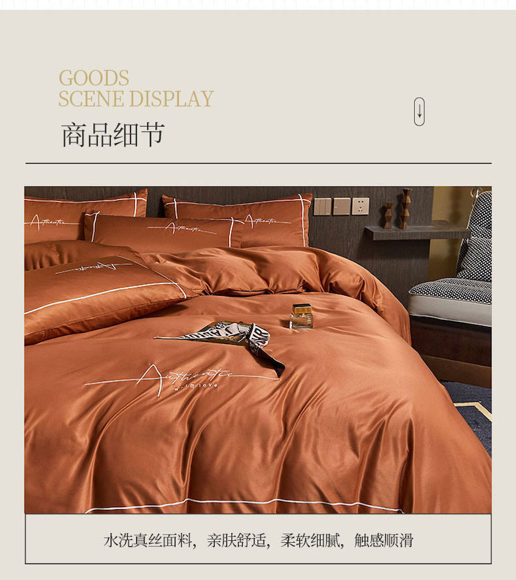 商品名称:凡客 2021春夏新款60支水洗真丝绣花四件套 圣卡罗-铁锈红