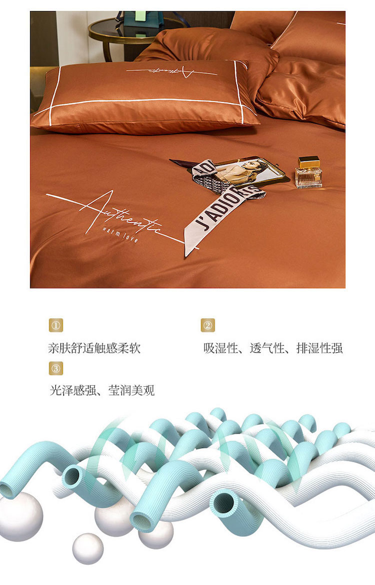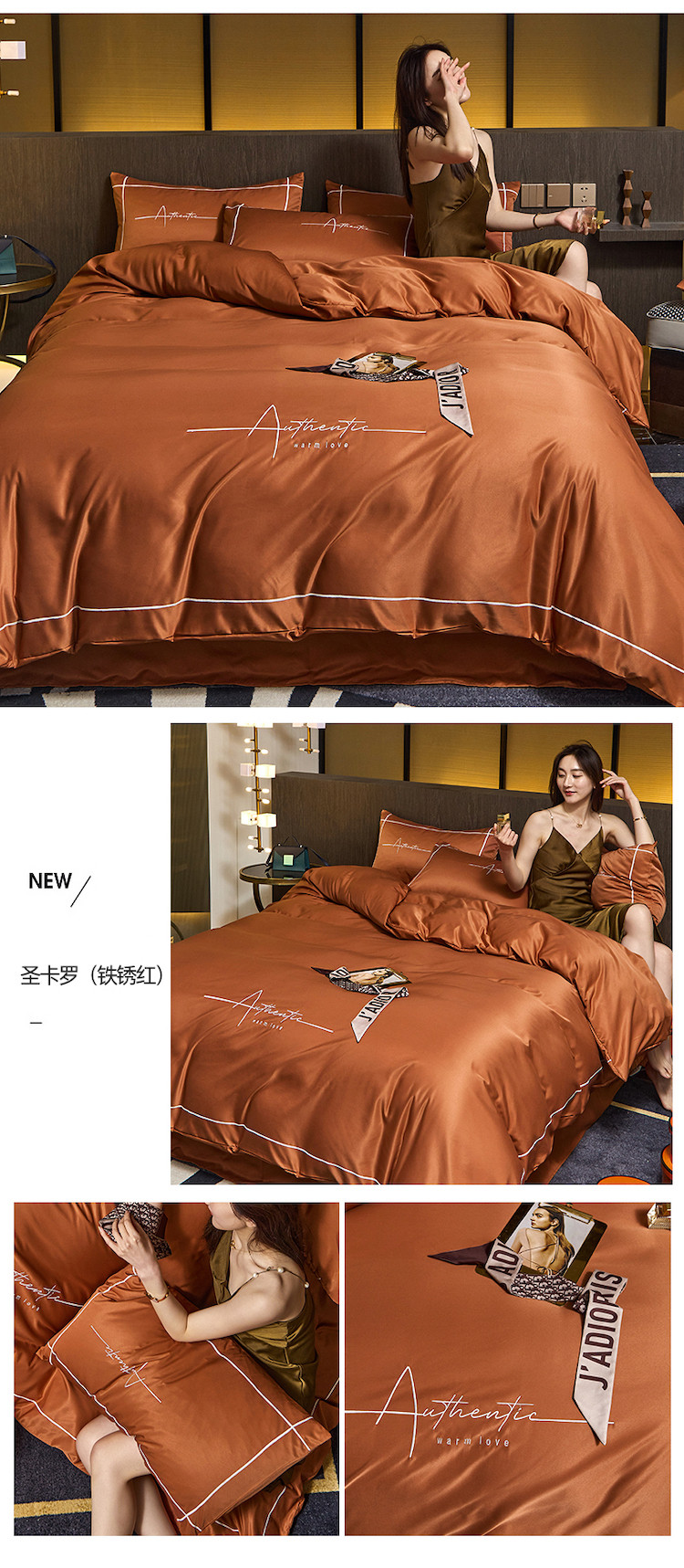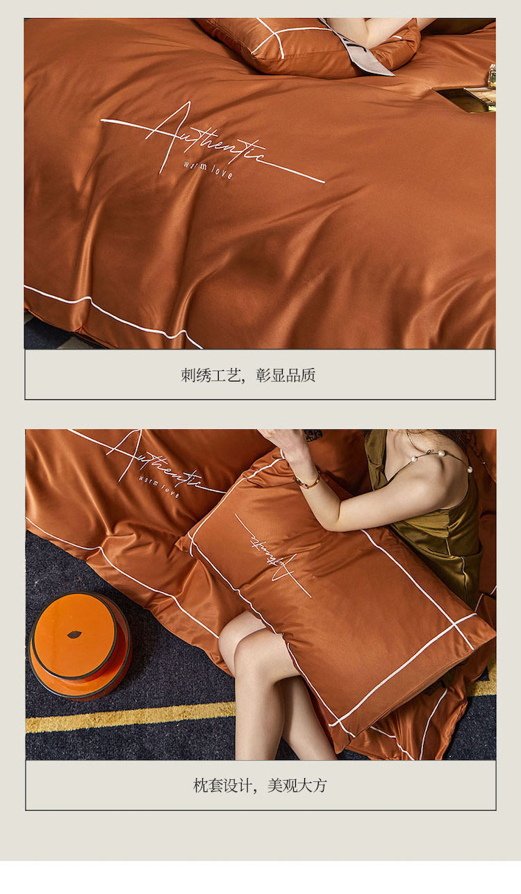 商品名称:凡客 2021春夏新款60支水洗真丝绣花四件套 圣卡罗-铁锈红