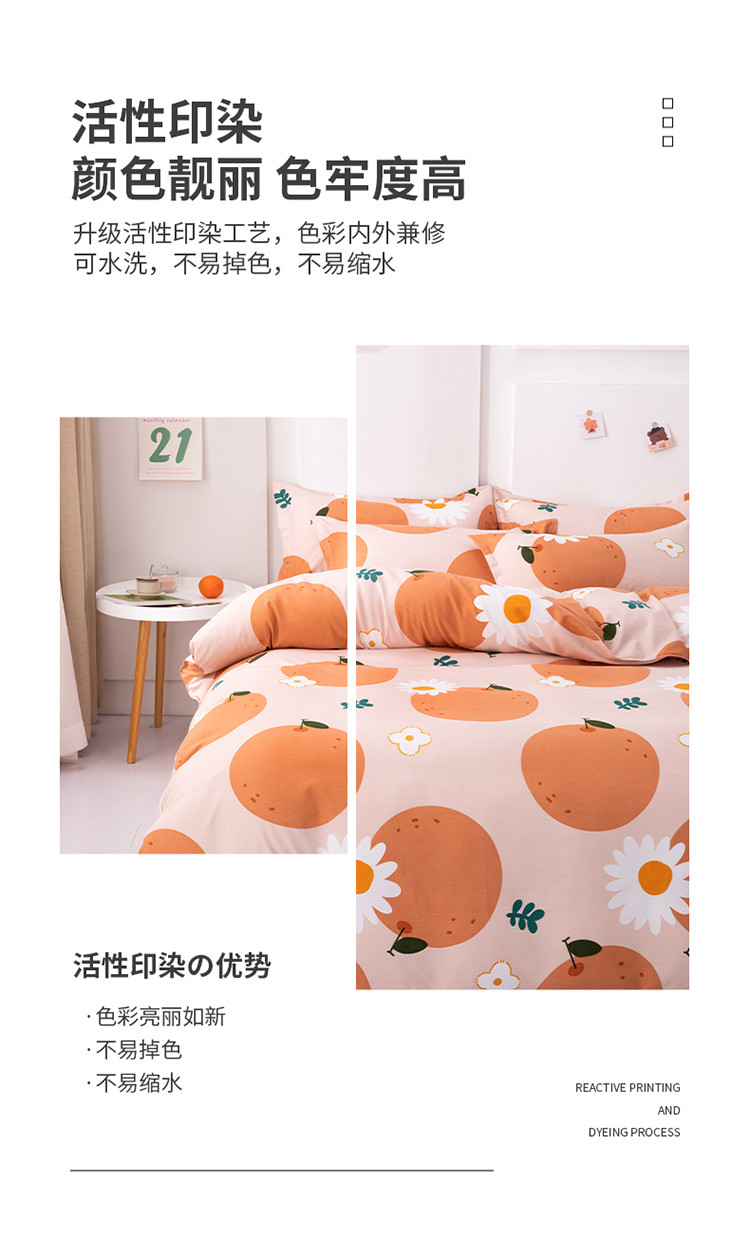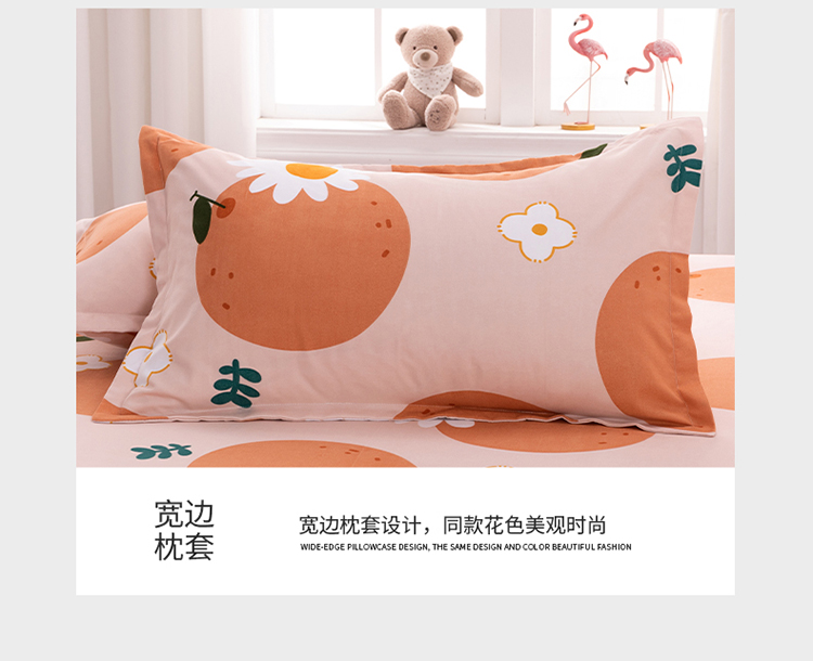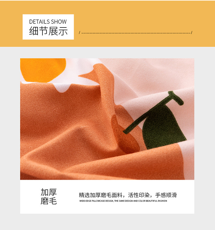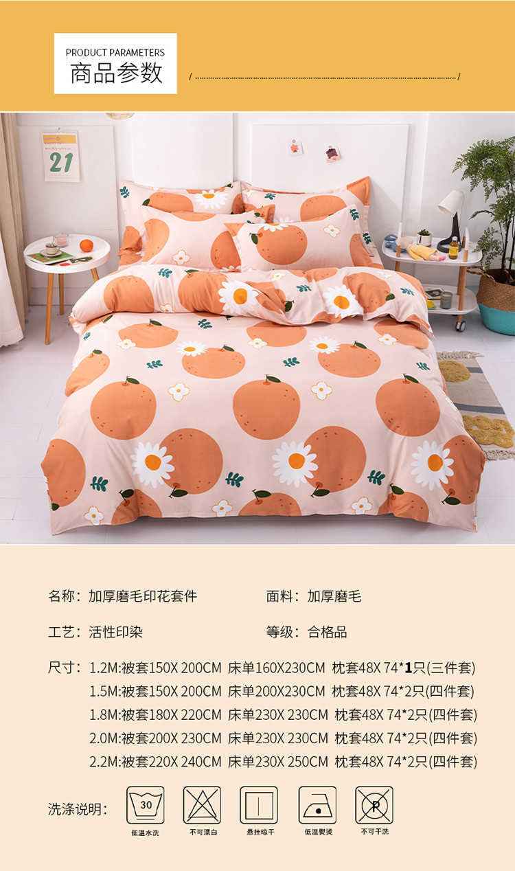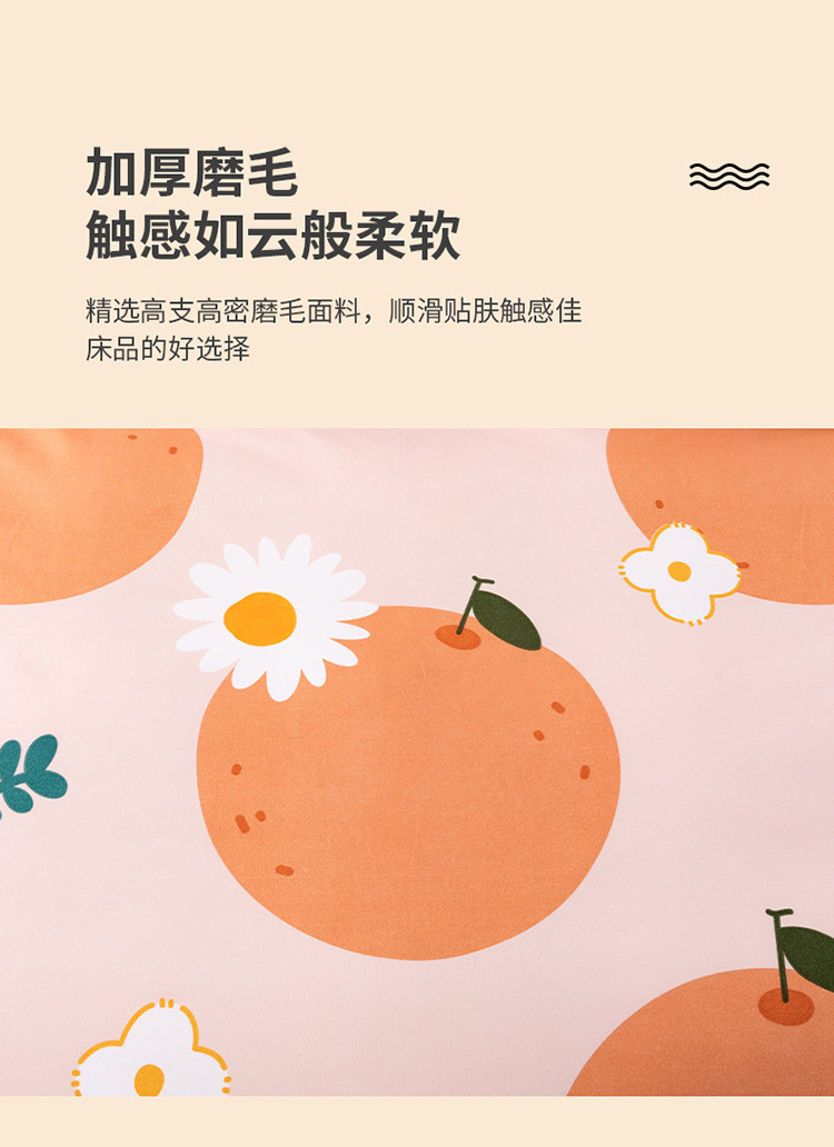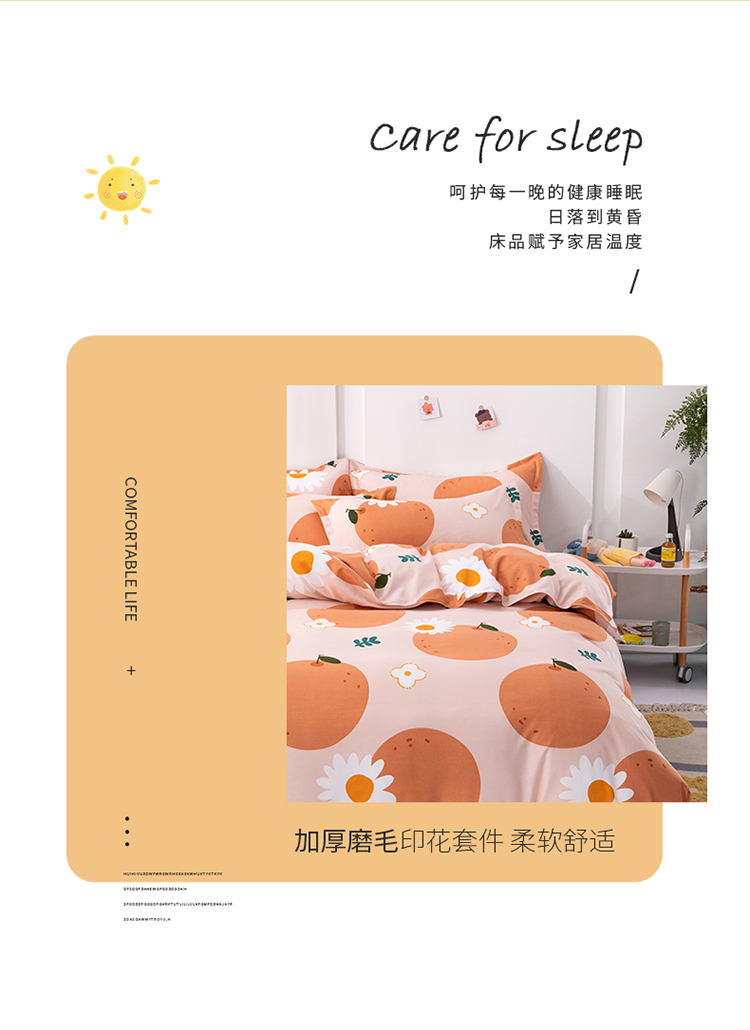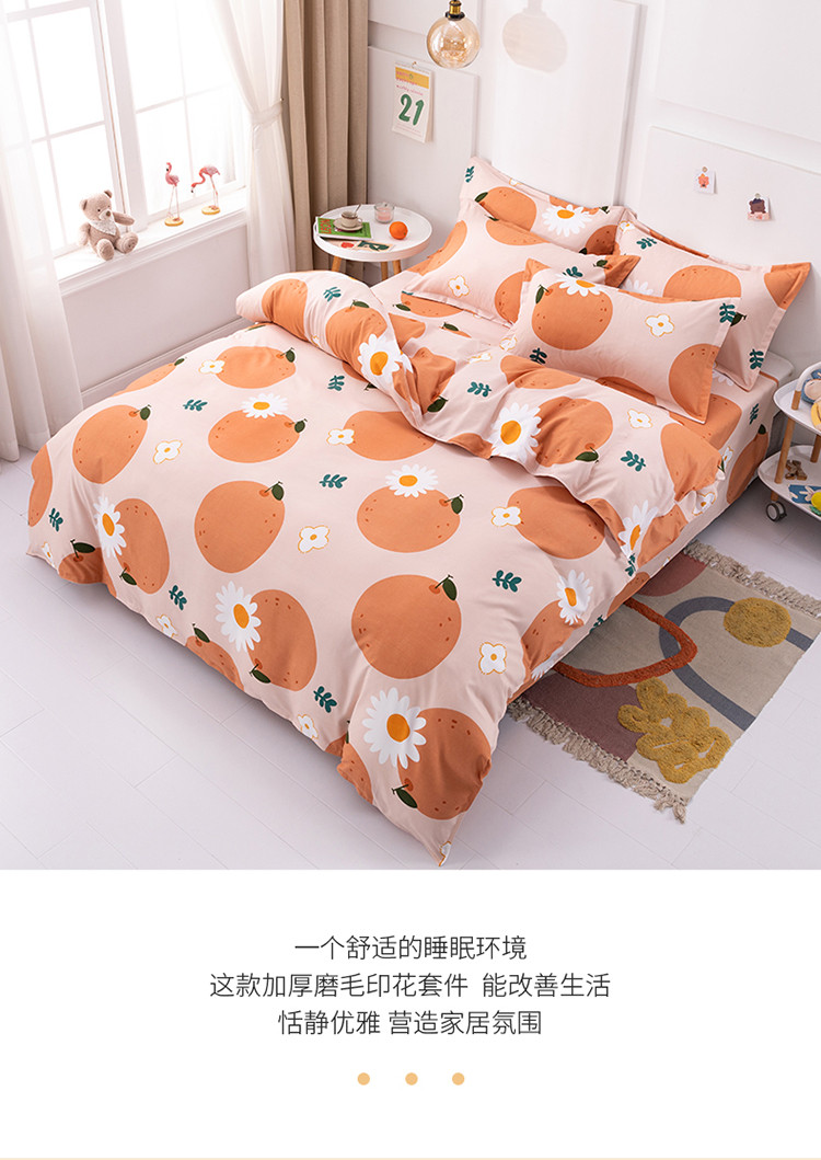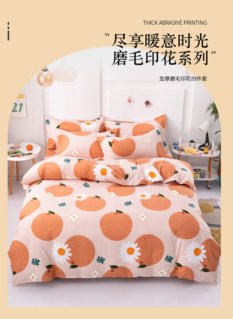 商品名称:佑佳140克磨毛印花植物羊绒四件套 爱媛甜橙-奶油桔