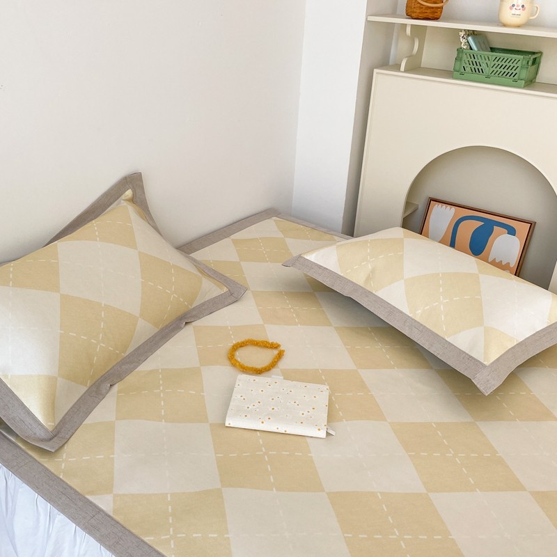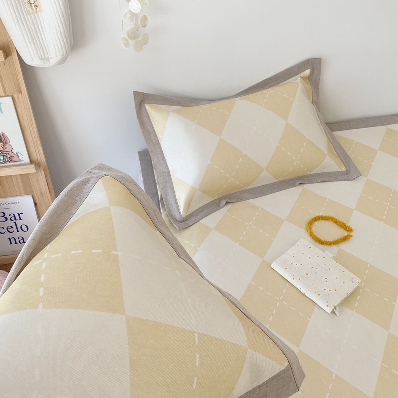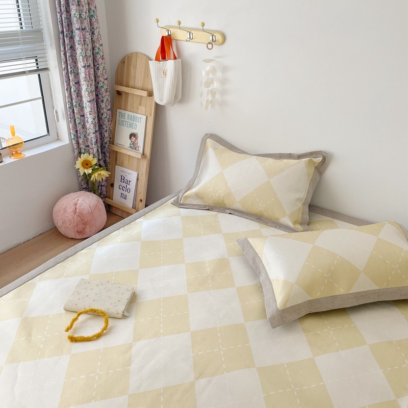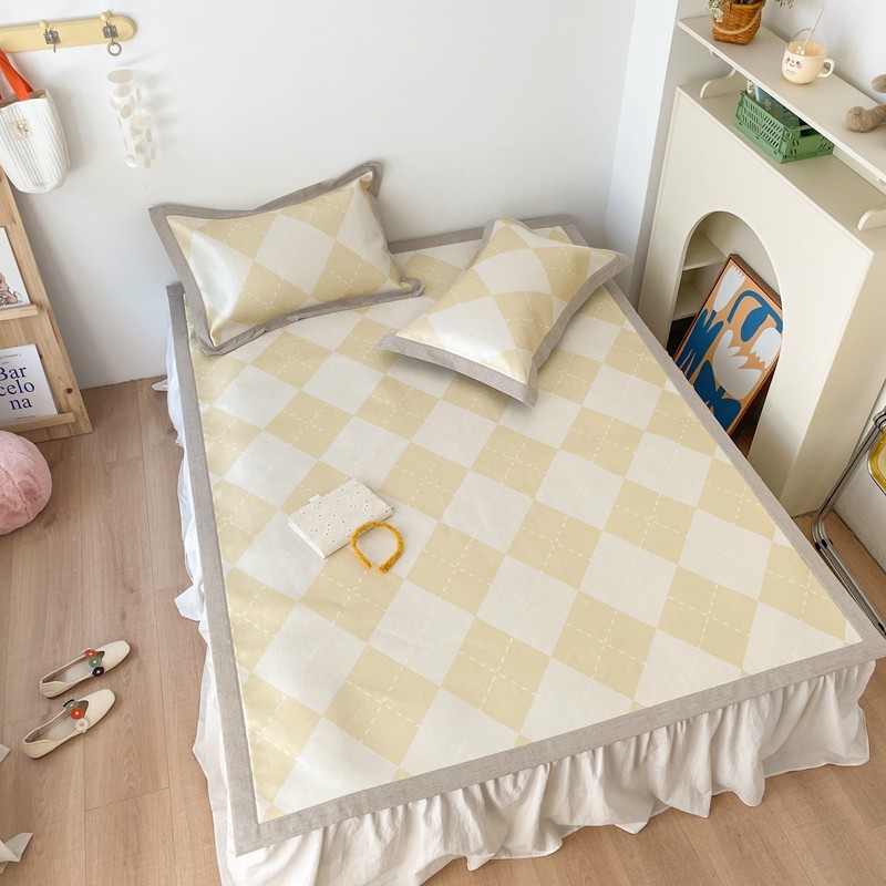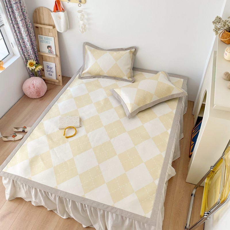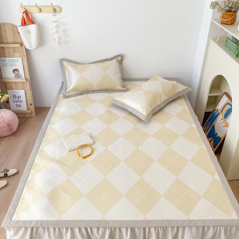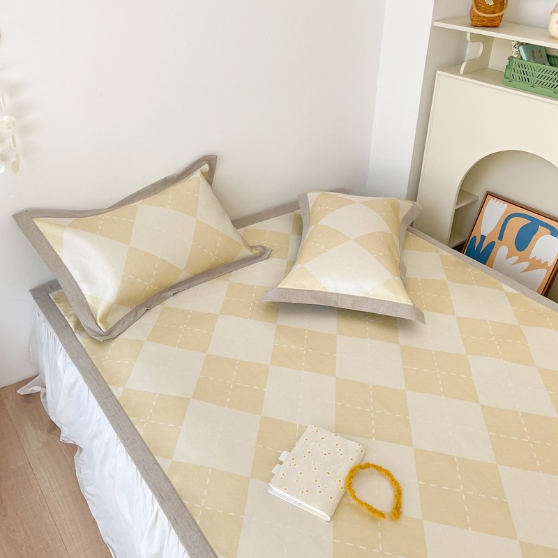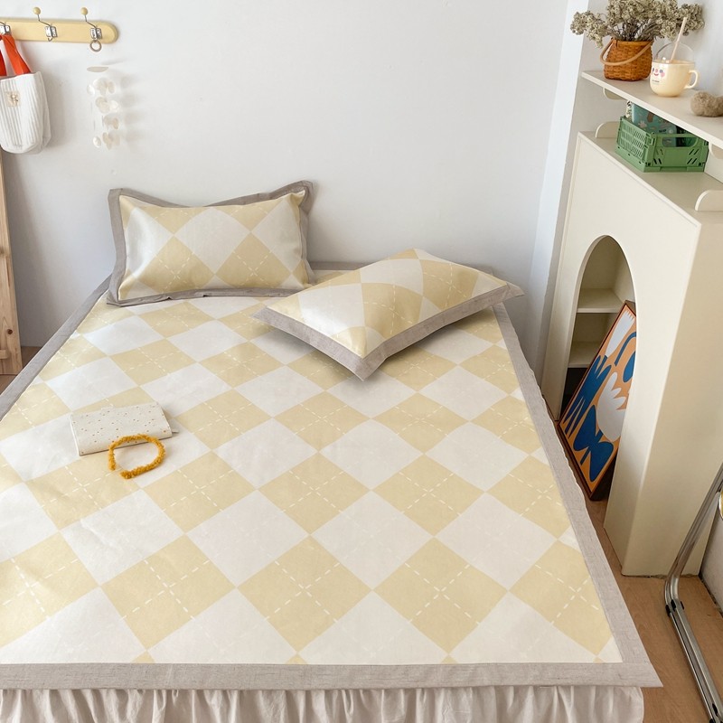 时年 2021新款水洗养生冰丝凉席 菱格黄