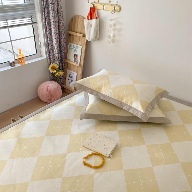 商品名称:时年 2021新款水洗养生冰丝凉席 菱格黄