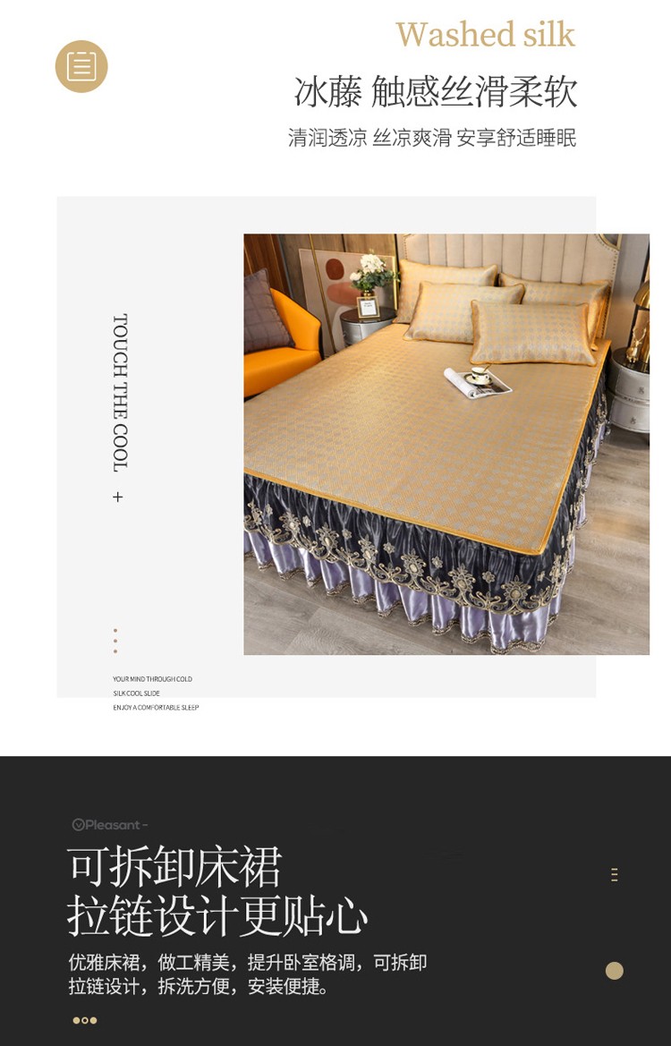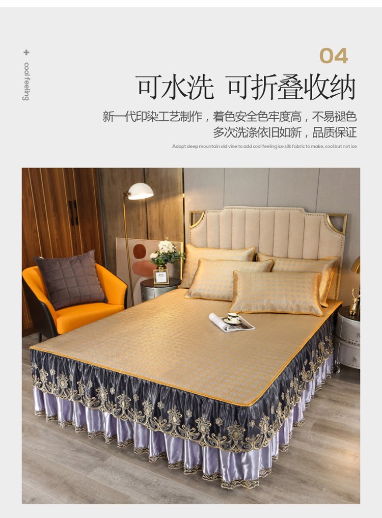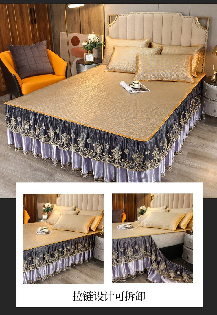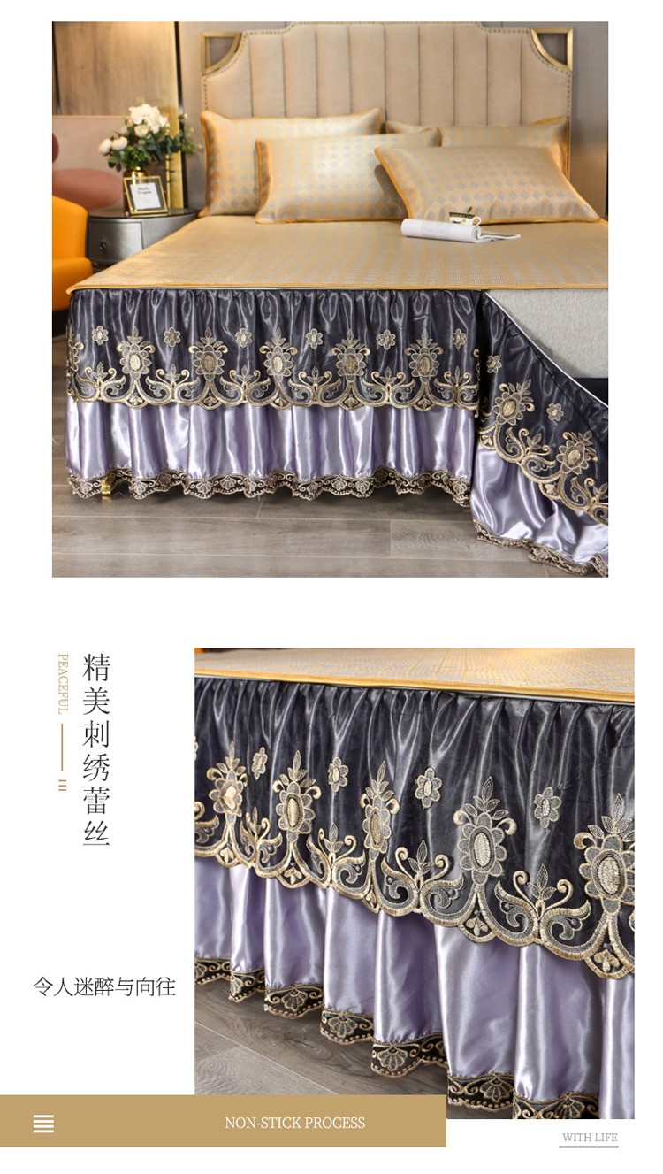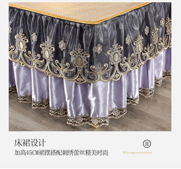 商品名称:菊上家纺 2021新款冰藤席床裙款三件套 香妃紫