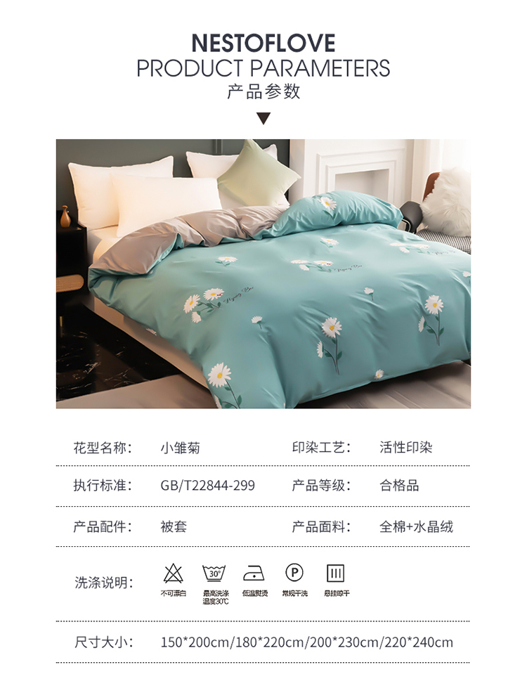 商品名称:芃成家纺 2021新款棉加绒单被套 小雏菊