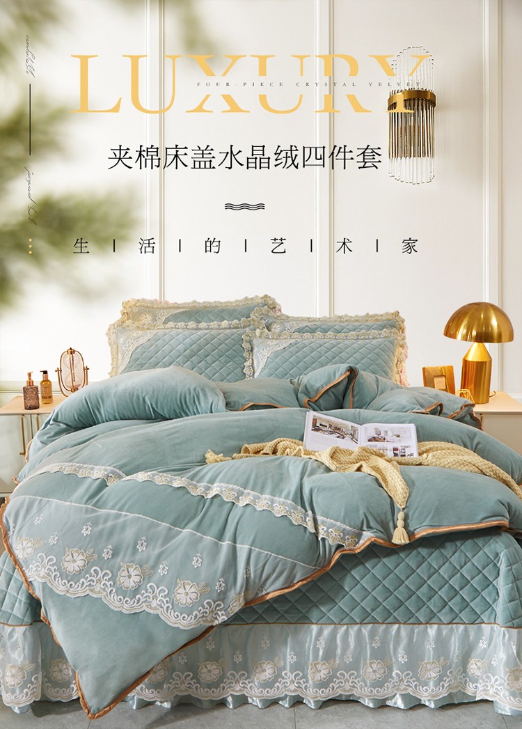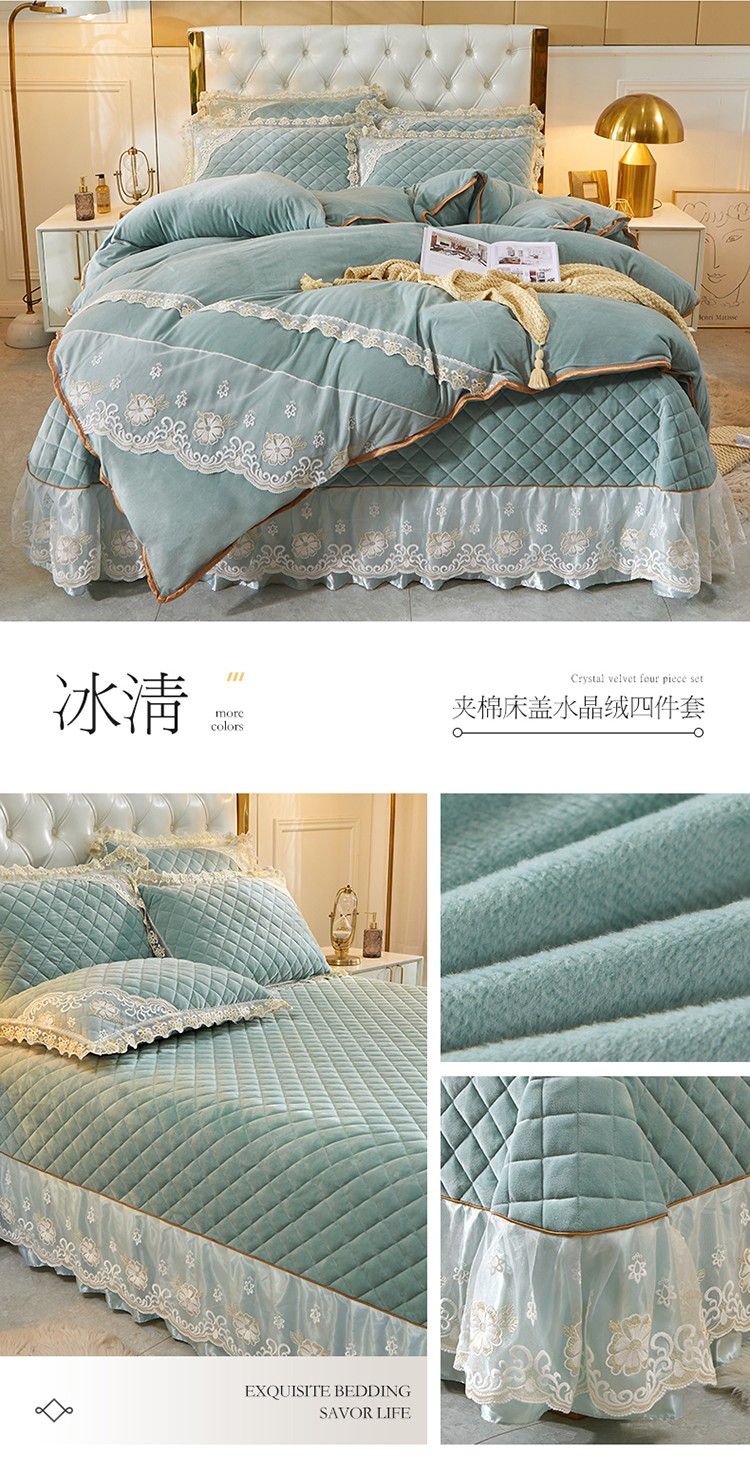(总)网红馆 2025新款曼妮夹棉床盖水晶绒四件套