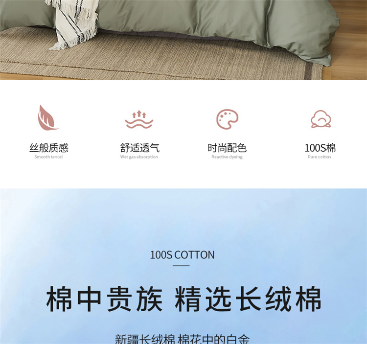 商品名称:新款长绒棉纯色单被套 松叶绿