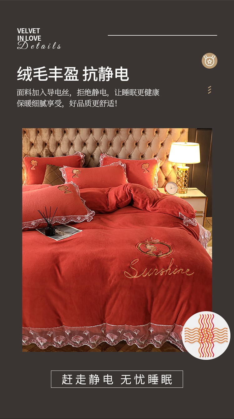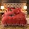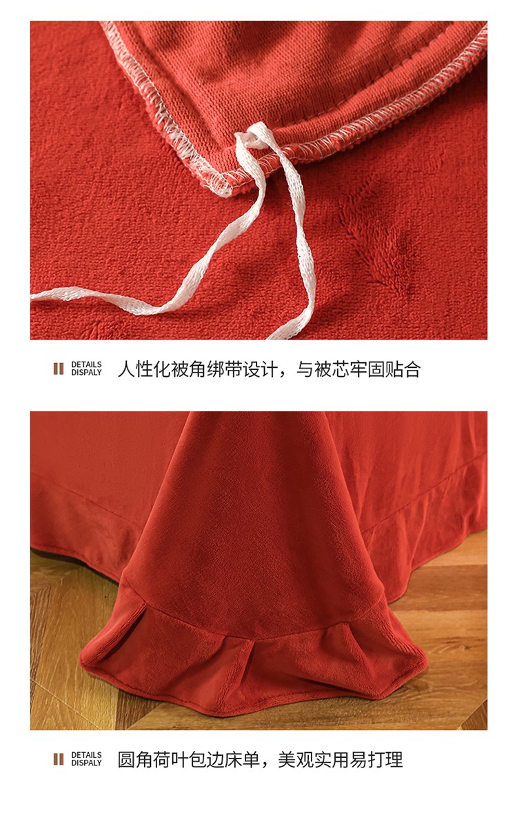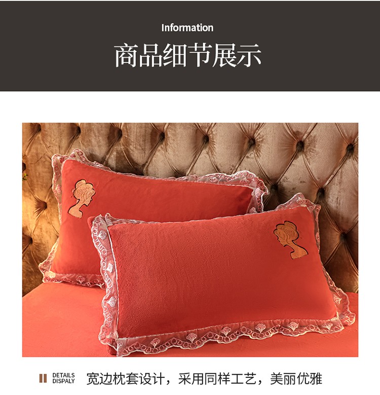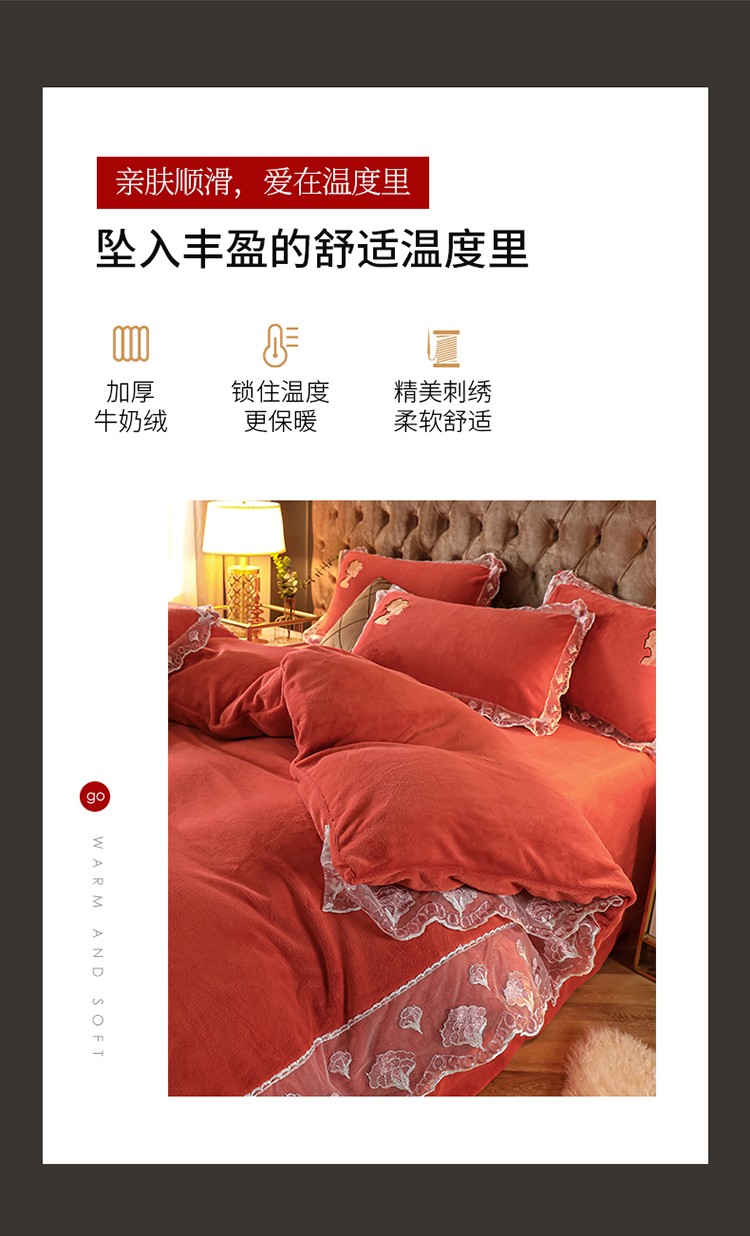 青竹苑2021新款220克加厚保暖牛奶绒刺绣蕾丝太妃款四件套 太妃桔