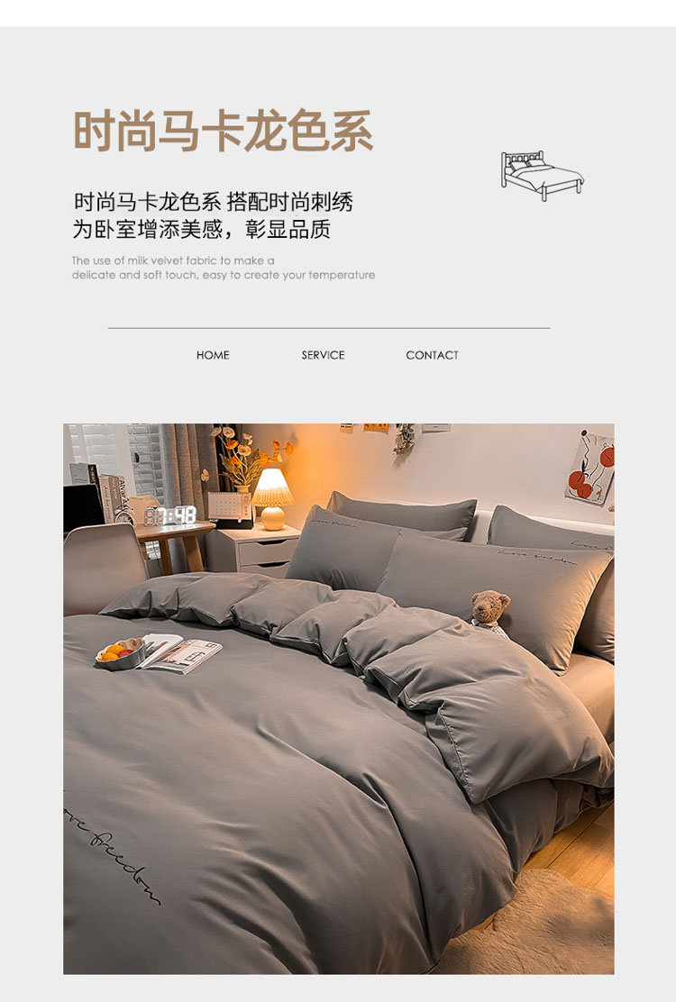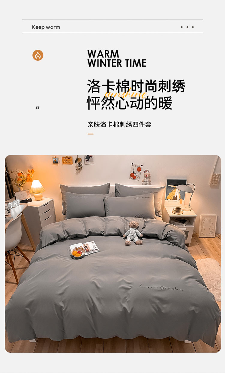 当前位置: 91家纺网 > 商品网购 > 床品套件 > 四件套 > 普通磨毛四件套 > 欣晴 202新款亲肤洛卡棉磨毛简约刺绣四件套 简约-浅灰