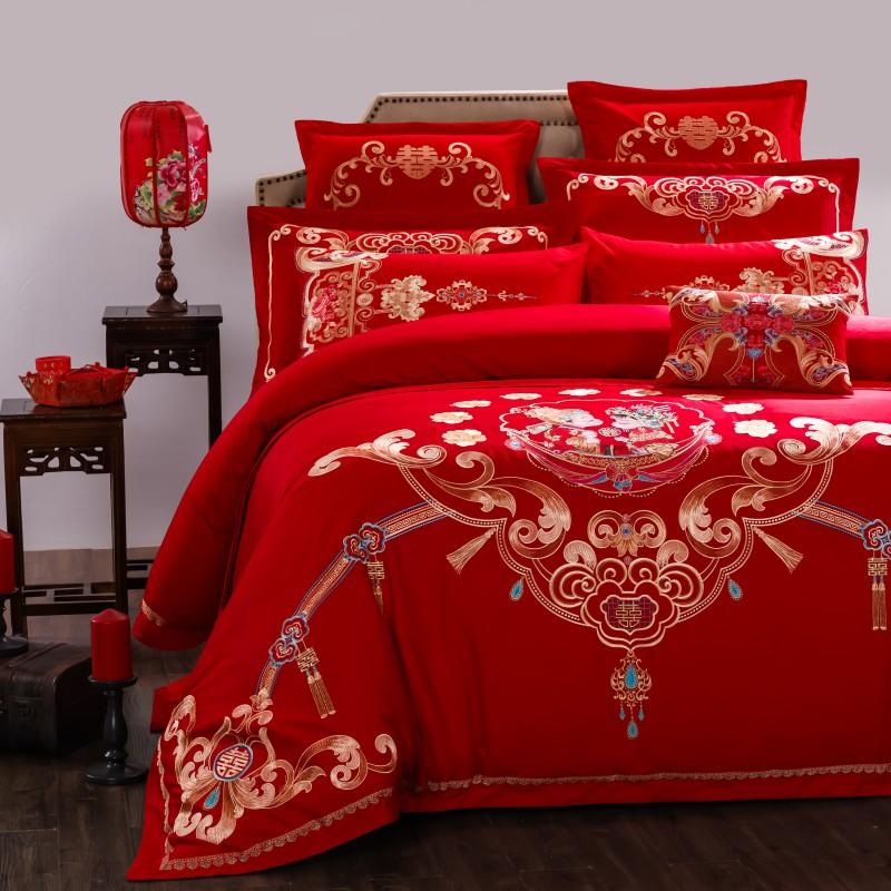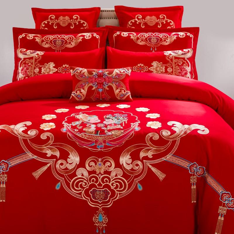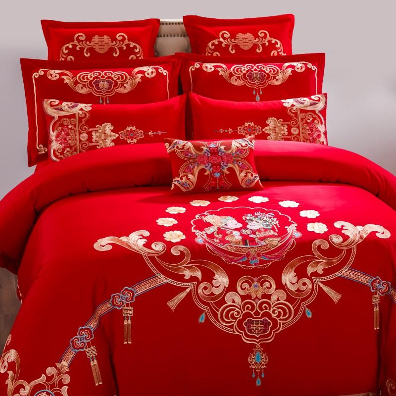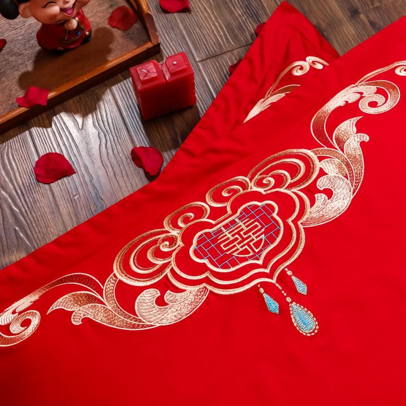 当前位置: 91家纺网 > 商品网购 > 床品套件 > 四件套 > 全棉普通四件套 > 布乐意 2025新款全棉绣花大红婚庆四件套多件套直播相伴一生