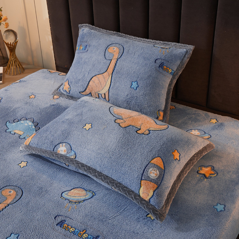 喜居 2021新款雪花绒单枕套 太空恐龙