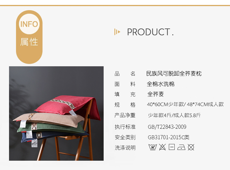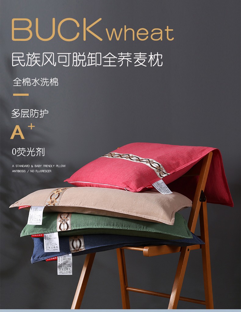 (总)沃兰国际 2025新款民族风可脱卸全荞麦枕头枕芯,卡其色少年款,军绿色少年款,水洗蓝少年款,卡其色成人款,胭脂红成人款,军绿色成人款,水洗蓝成人款
