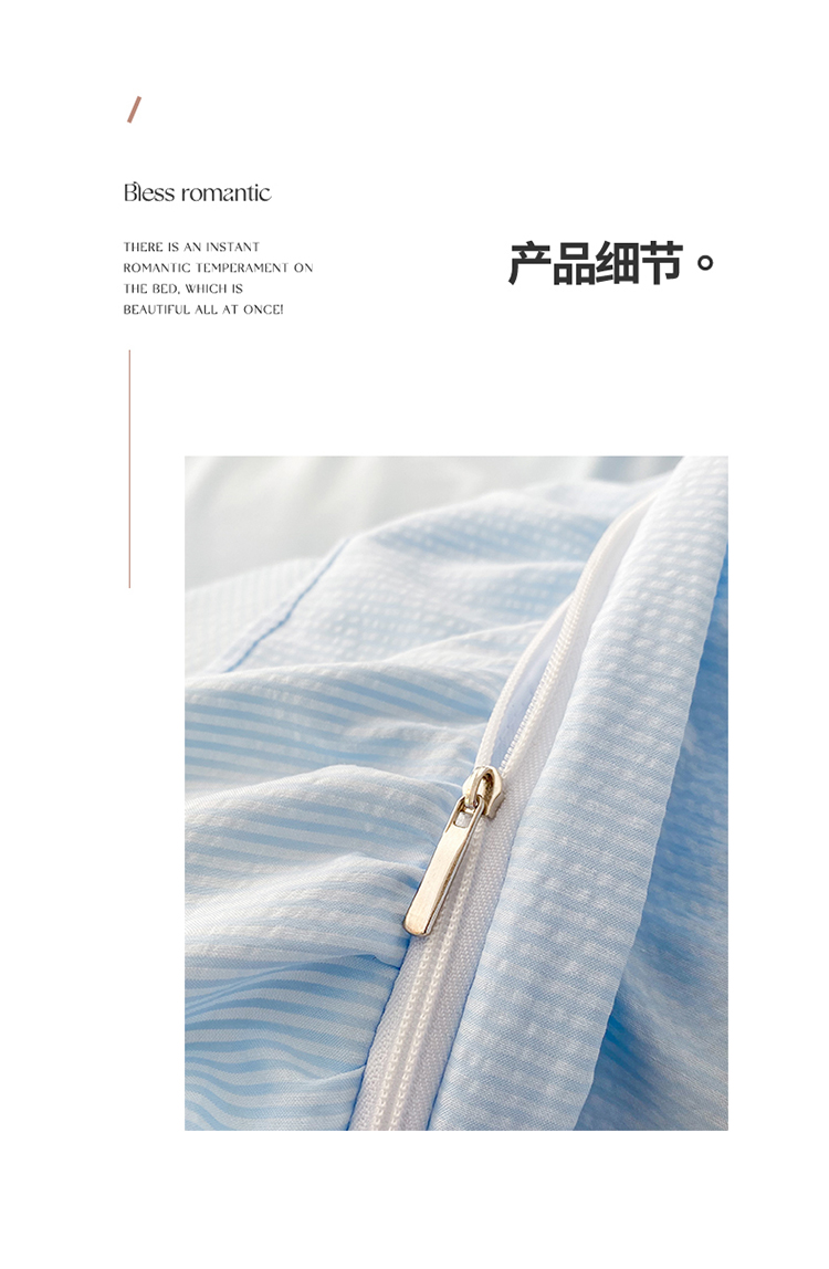 商品名称:艾晶美家纺 2022新款莱赛尔天丝泡泡纱绣花四件套 巴黎春天-冰蓝
