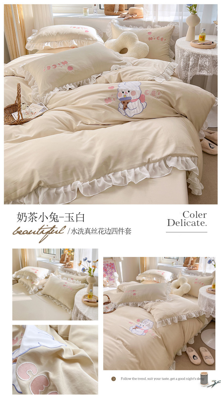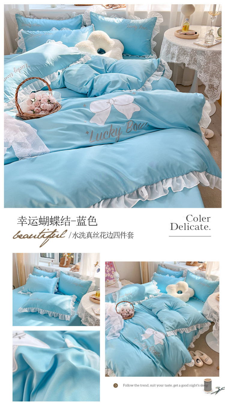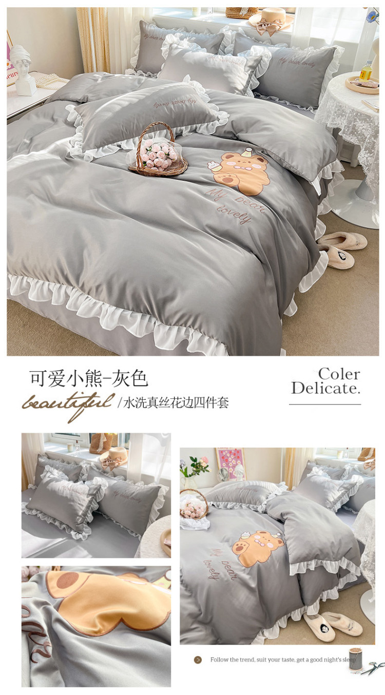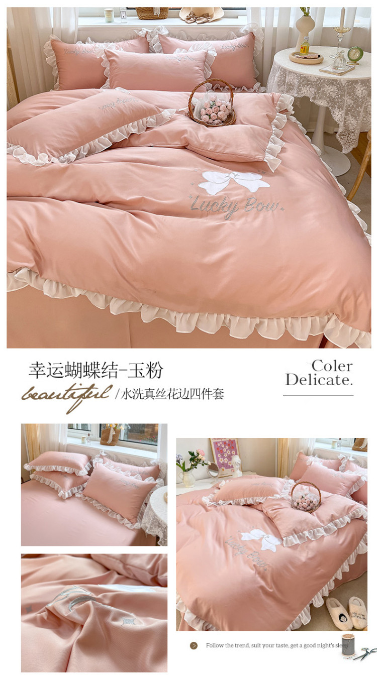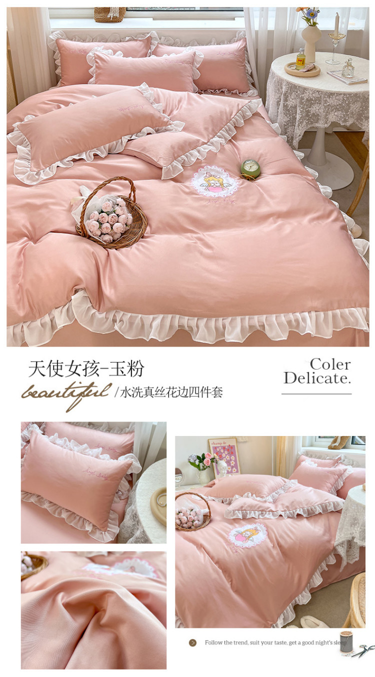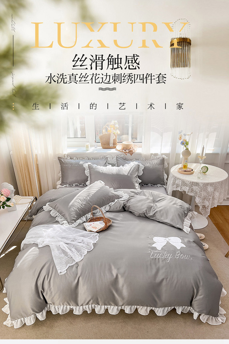 (总)沐慕 22新款水洗真丝刺绣花边四件套