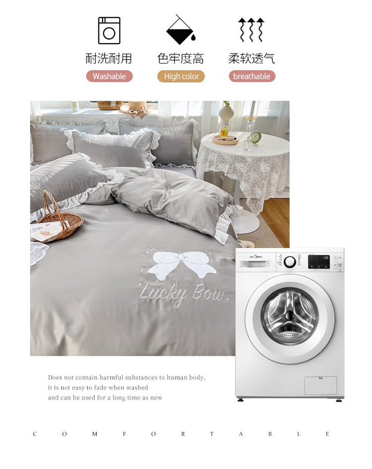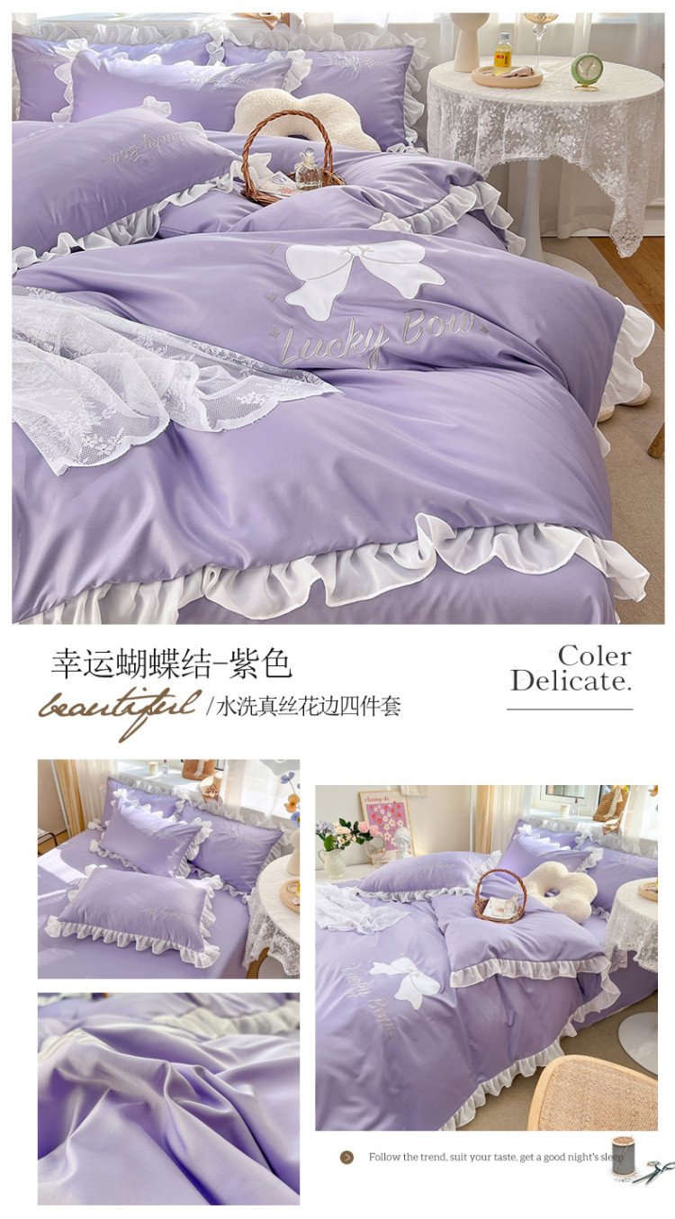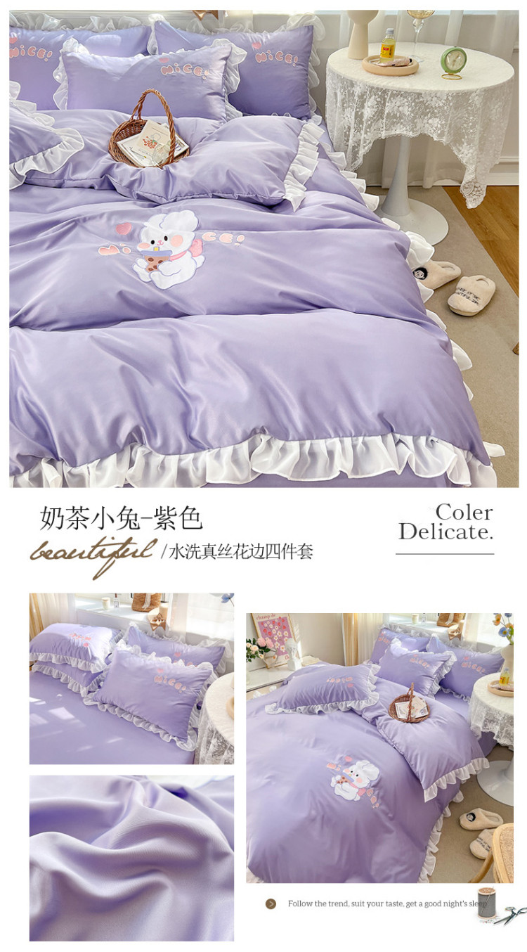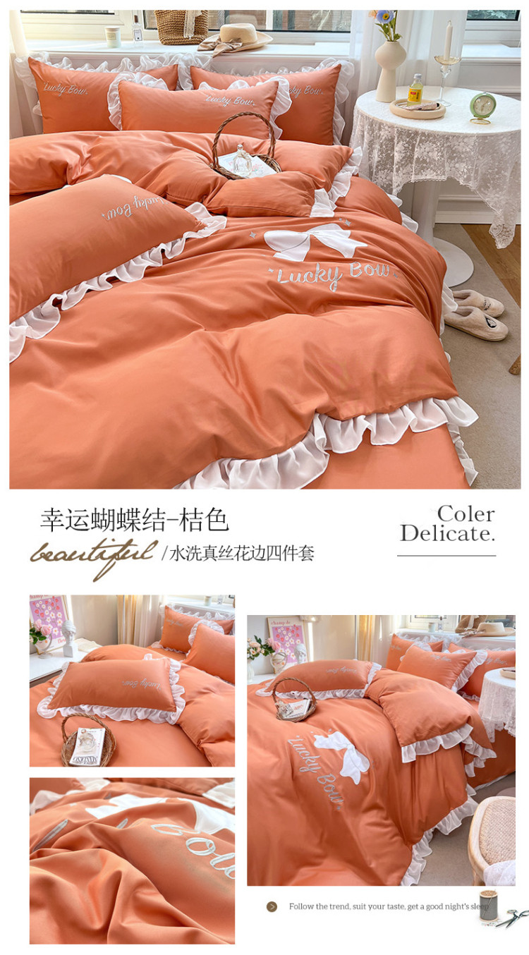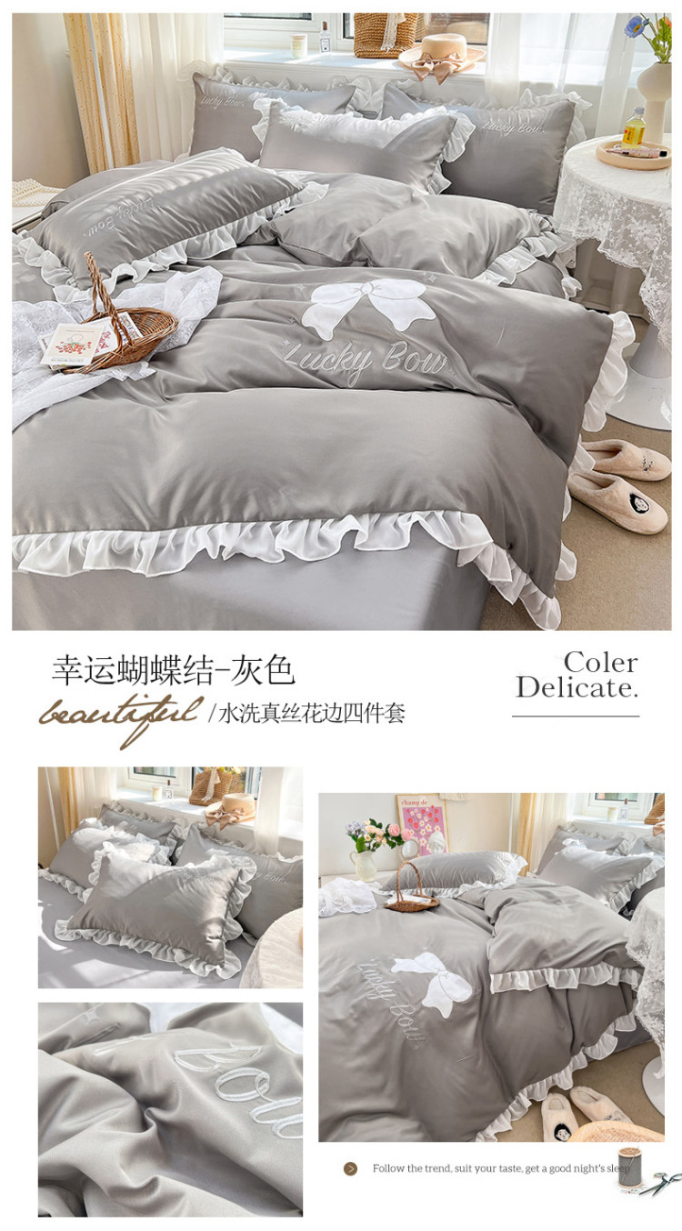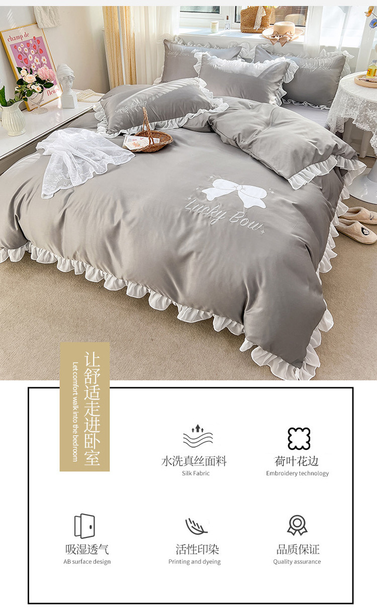 (总)沐慕 22新款水洗真丝刺绣花边四件套