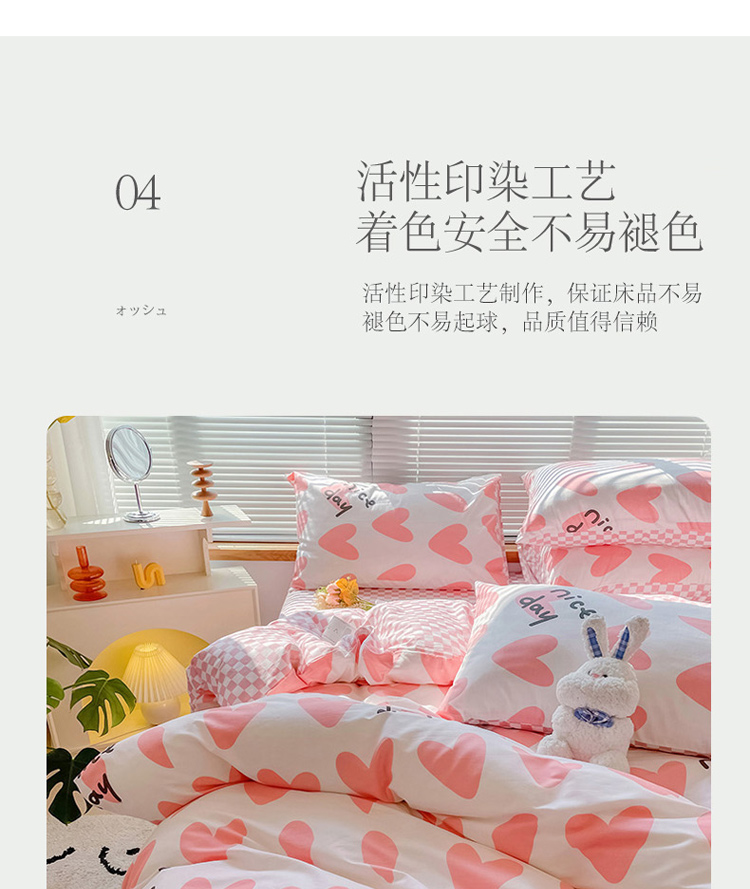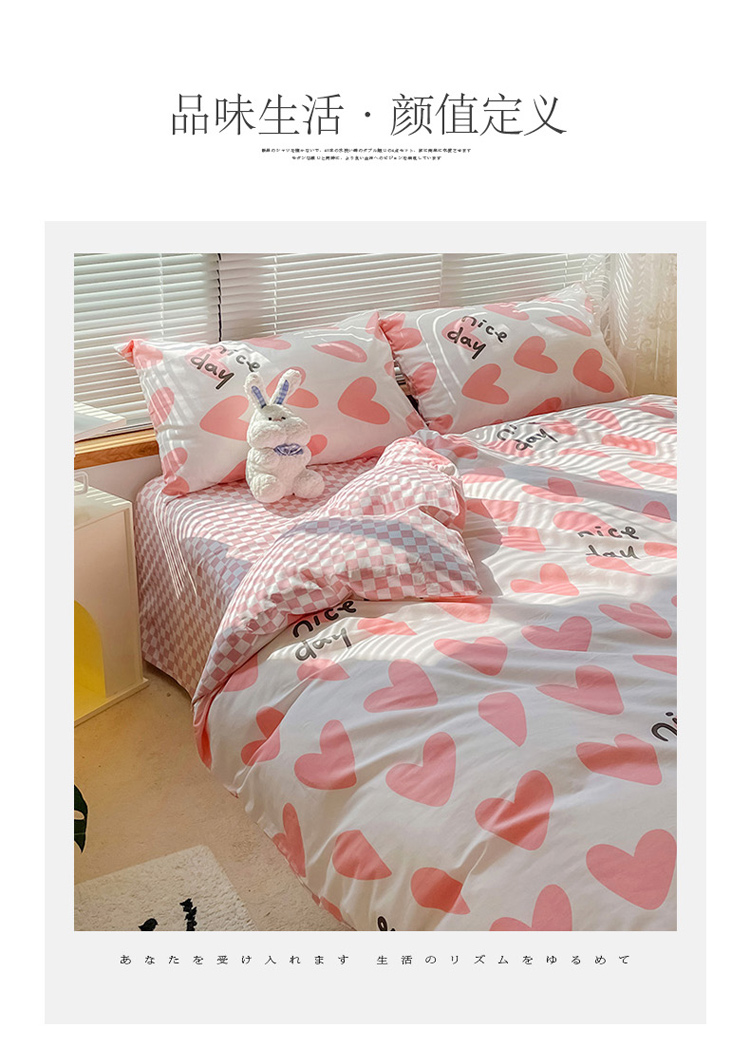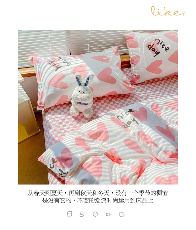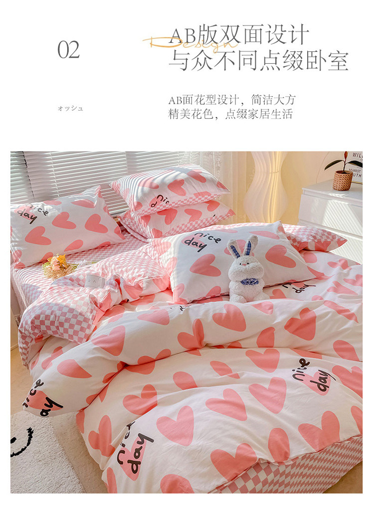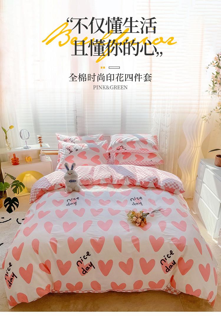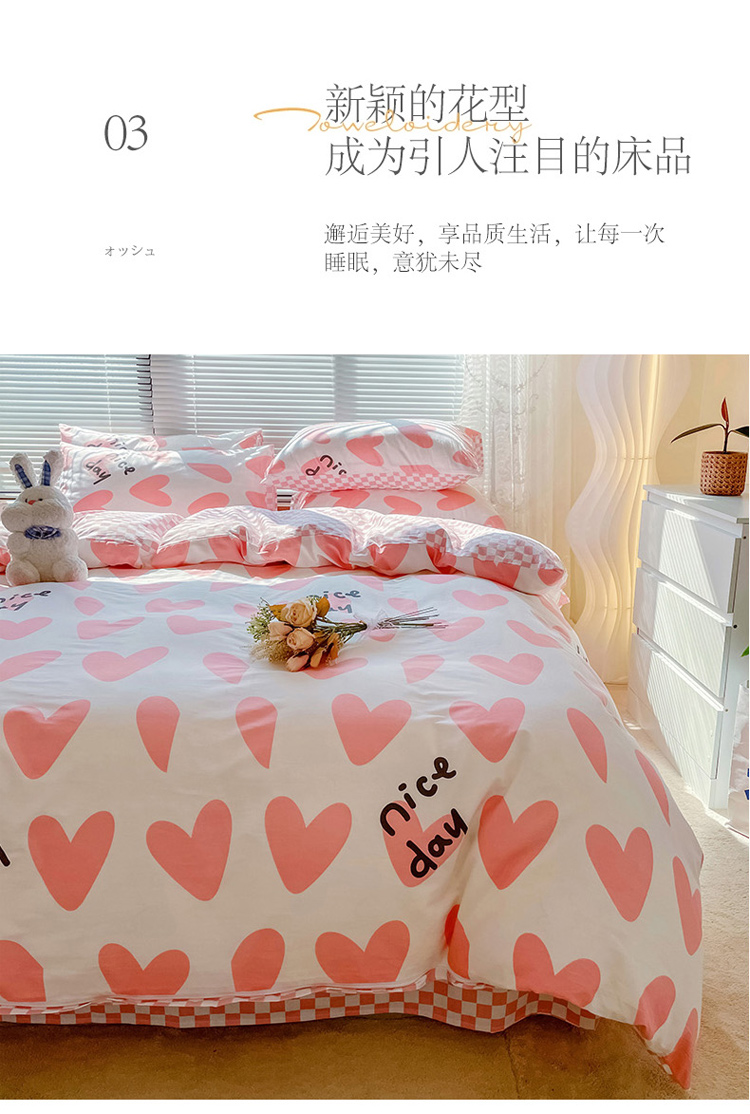 当前位置: 91家纺网 > 商品网购 > 床品套件 > 四件套 > 全棉普通四件套 > 寐居2022春季新款全棉四件套 心心相印