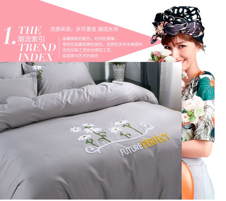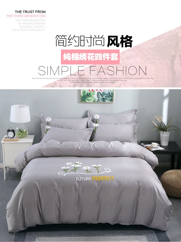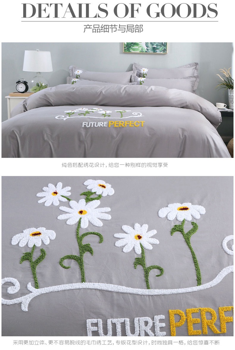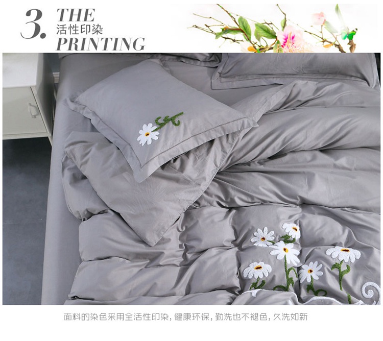 2022晶缦全棉13372纯色毛巾绣绣花四件套 夏花绽放灰色