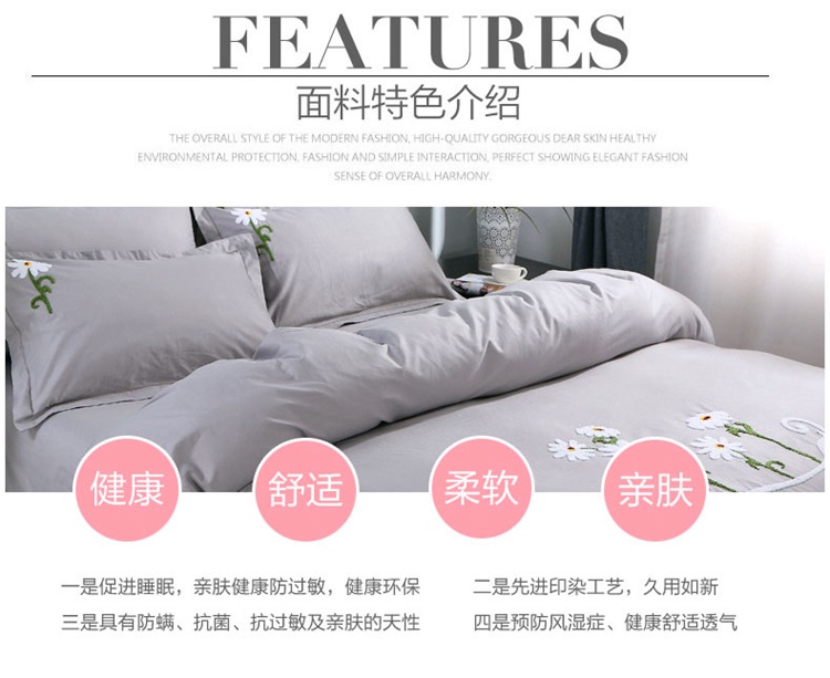商品名称:2022晶缦全棉13372纯色毛巾绣绣花四件套 夏花绽放灰色