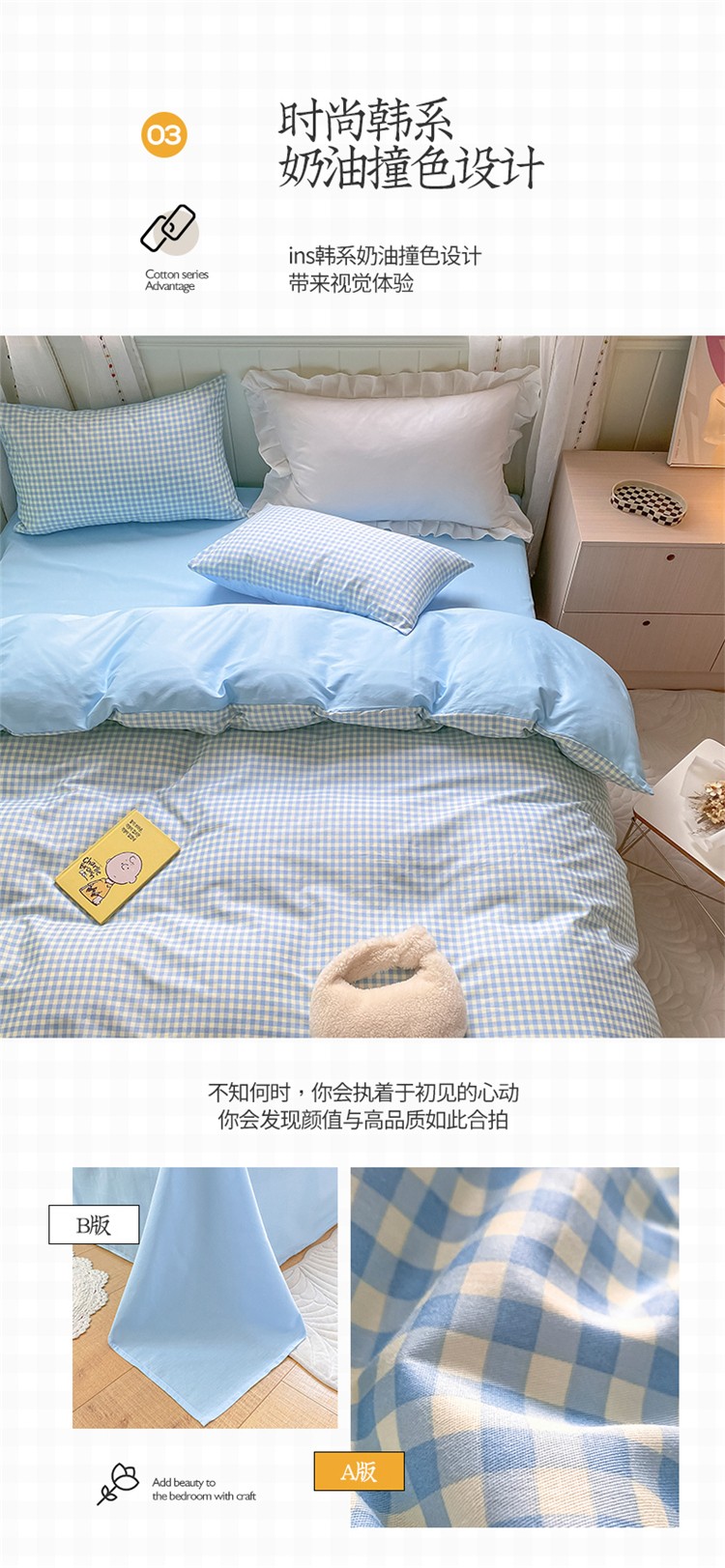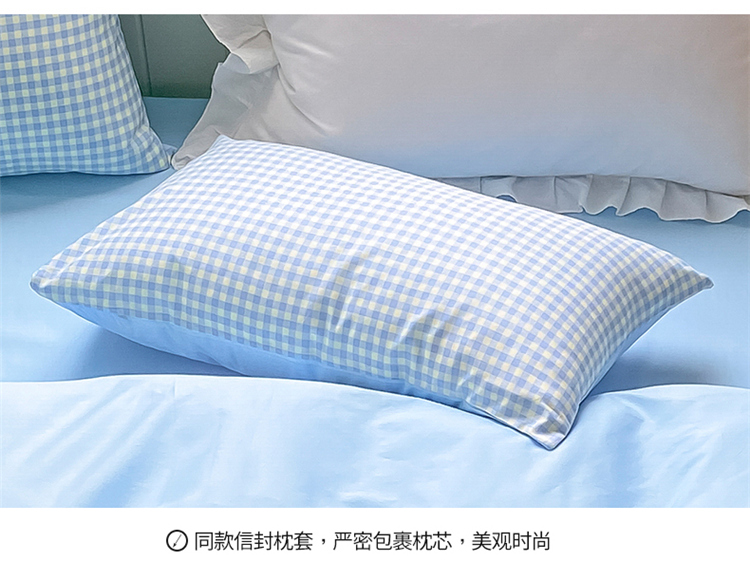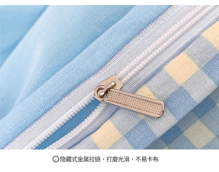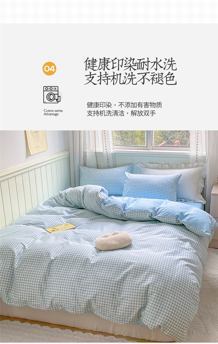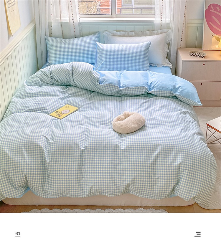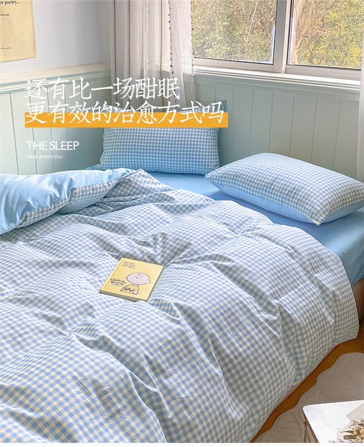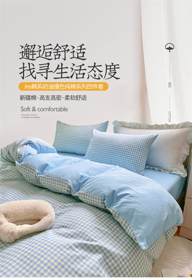 桃子家居 2022韩系ins奶油条格撞色纯棉四件套蓝格苏打