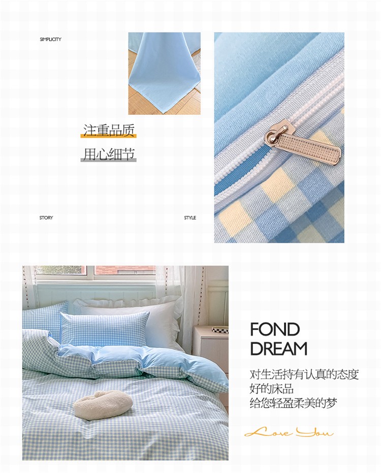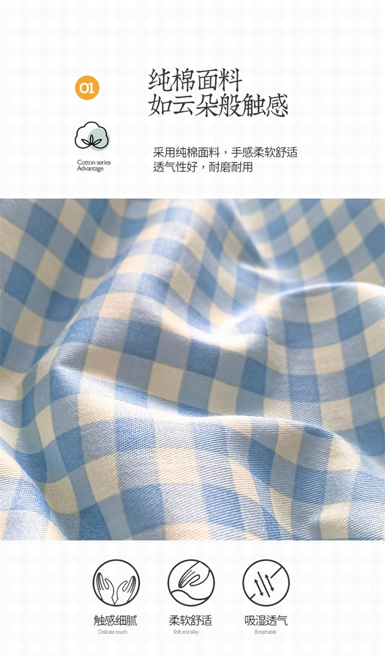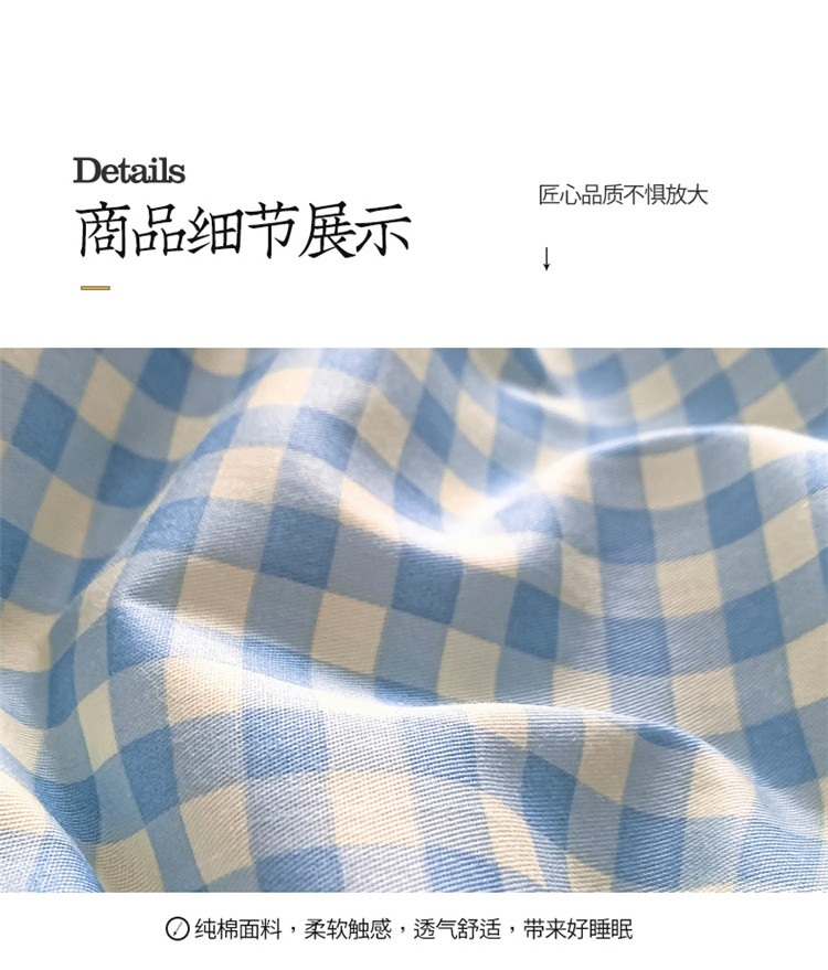 商品名称:桃子家居 2022韩系ins奶油条格撞色纯棉四件套蓝格苏打