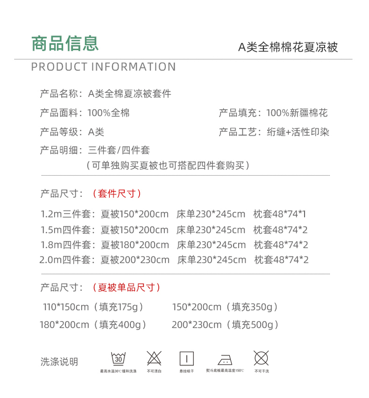 1.2三件套【150*200夏被+230*245床单+1个枕套】 | ¥108.00 |