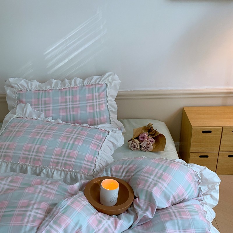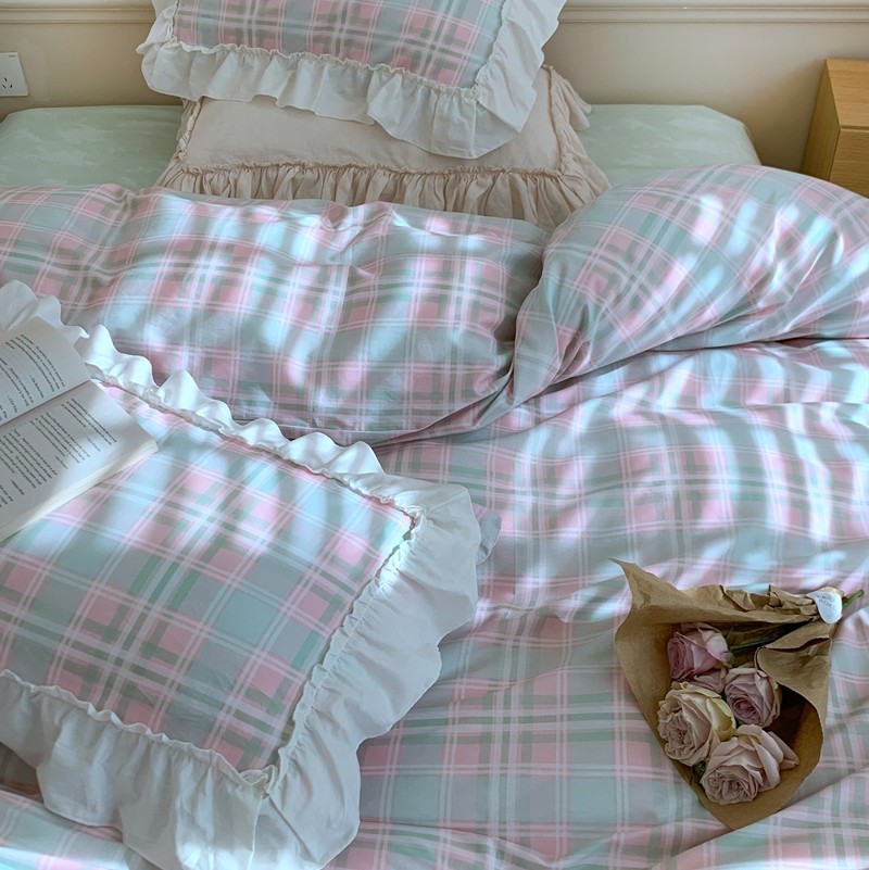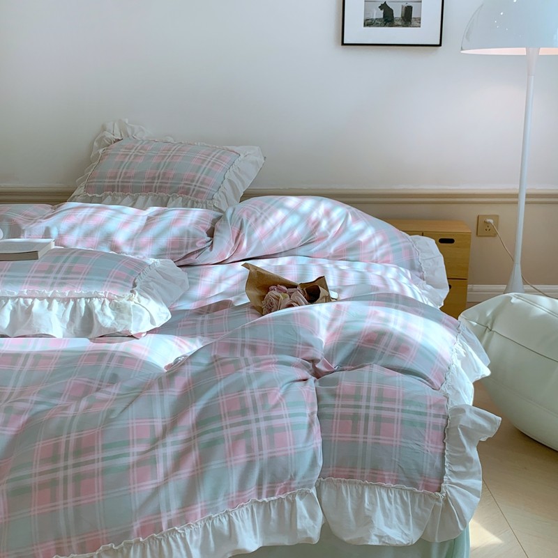 昔可2022新款花边格子系列四件套 爱丁堡格