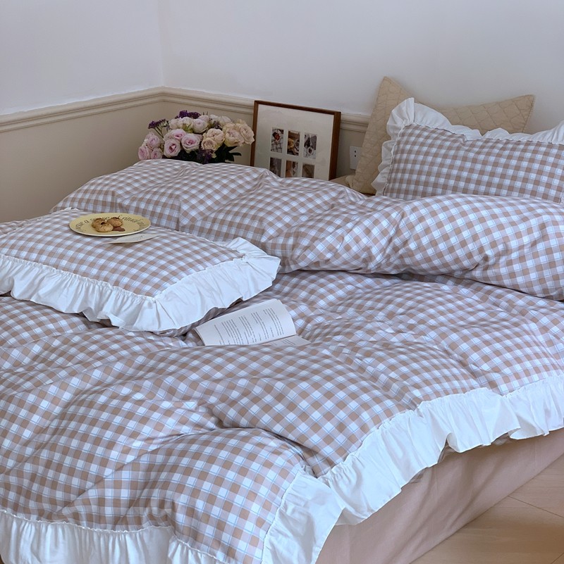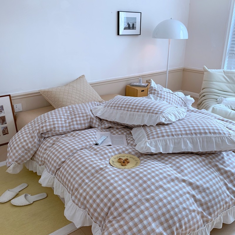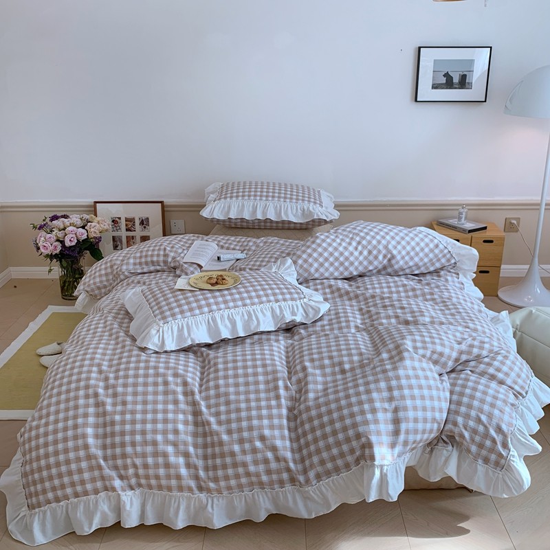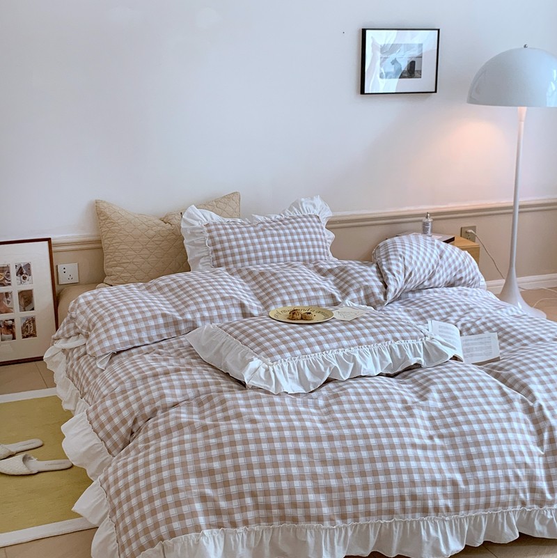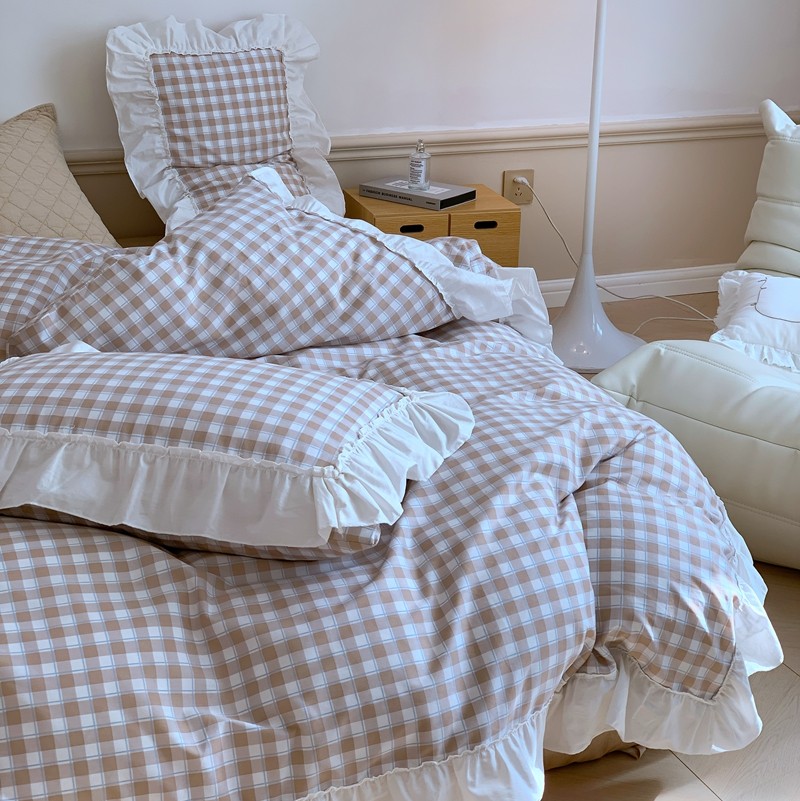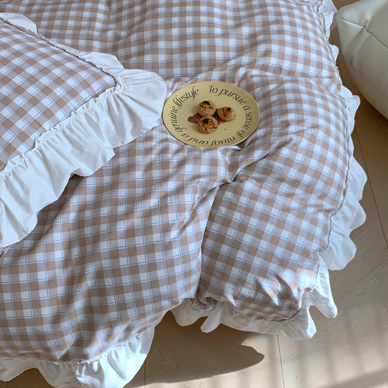 商品名称:昔可2022新款花边格子系列四件套 苏格咖