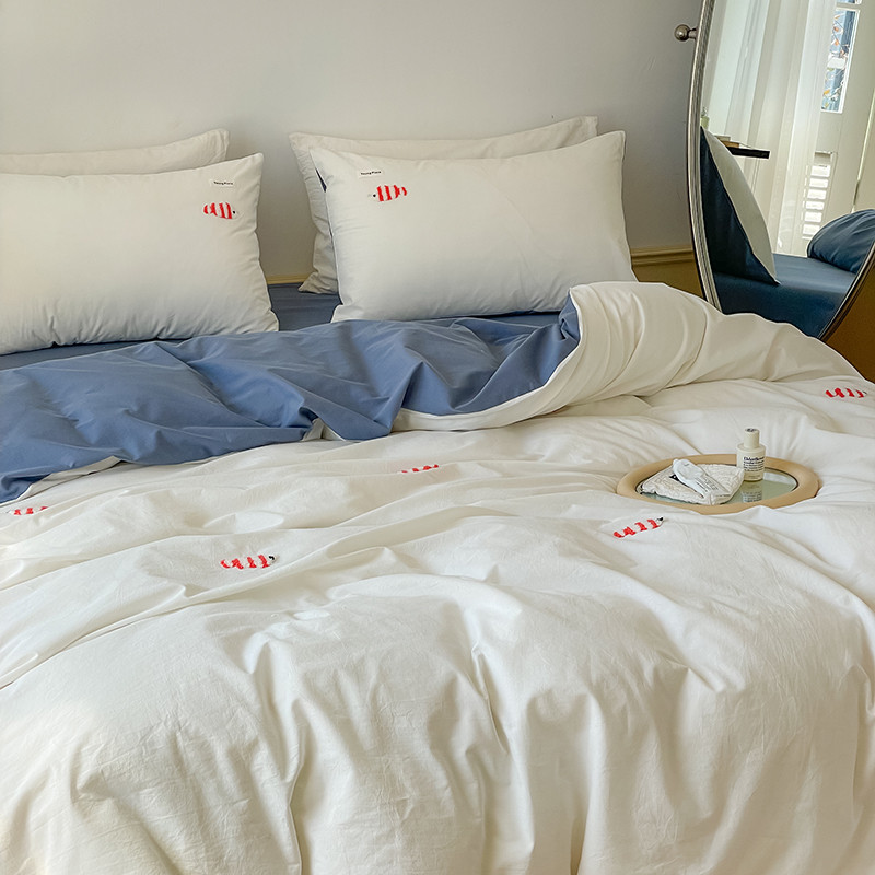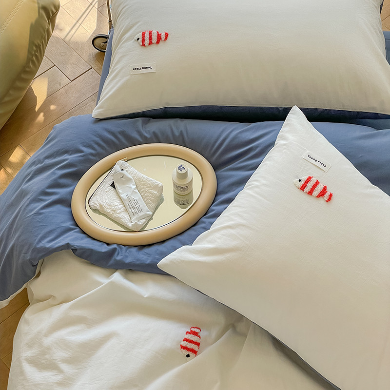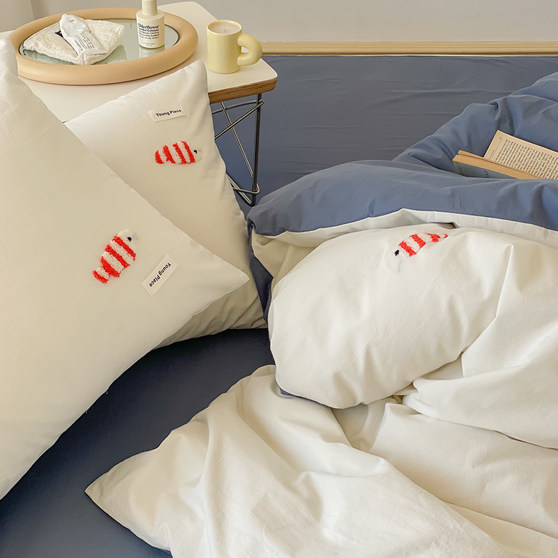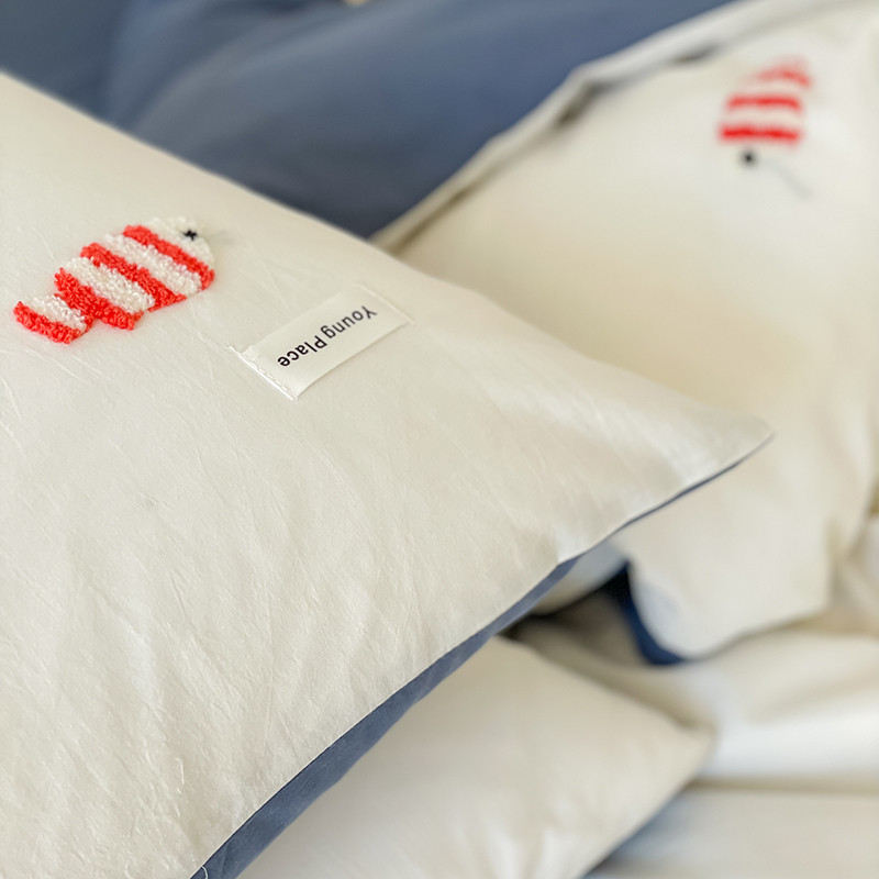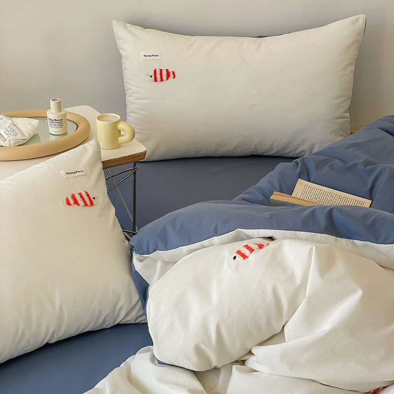 洋铭区 2022新款全棉小清新水洗棉刺绣系列 鱼儿游游