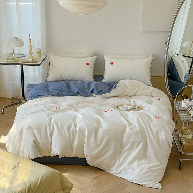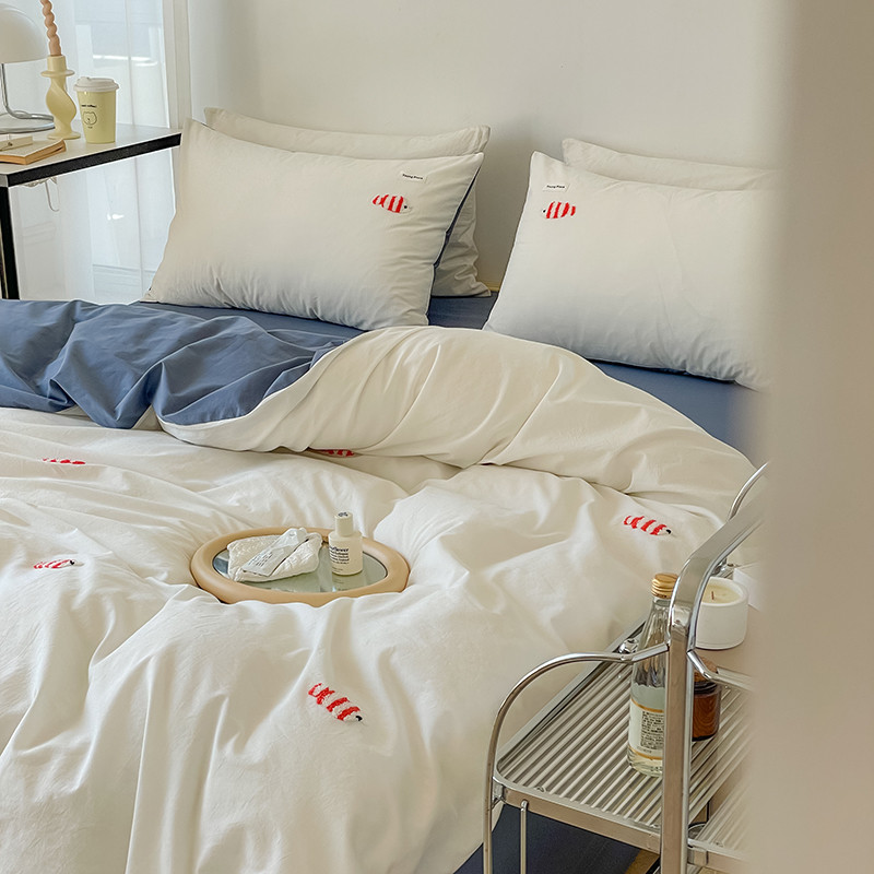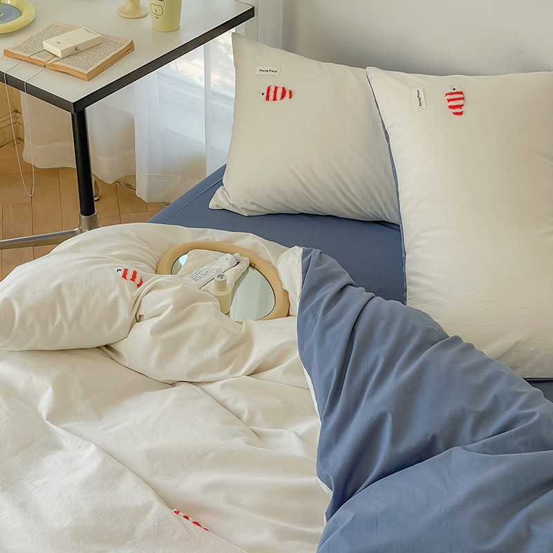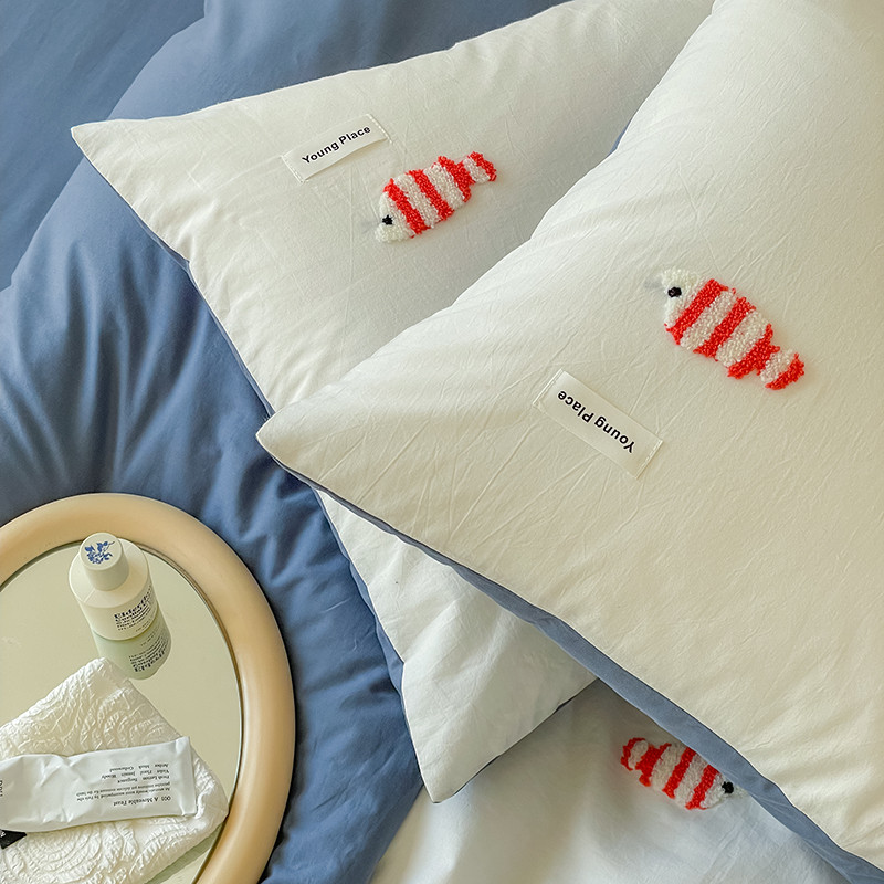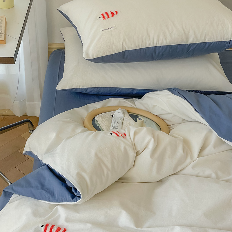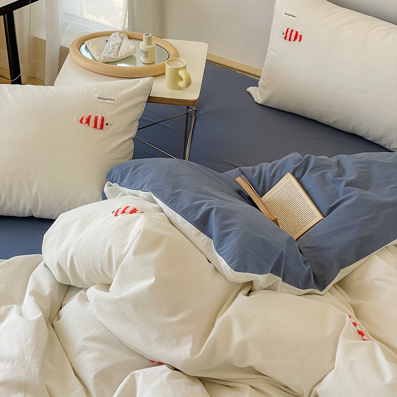 洋铭区 2022新款全棉小清新水洗棉刺绣系列 鱼儿游游