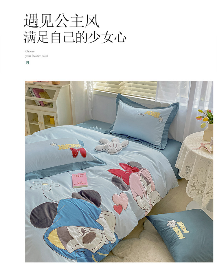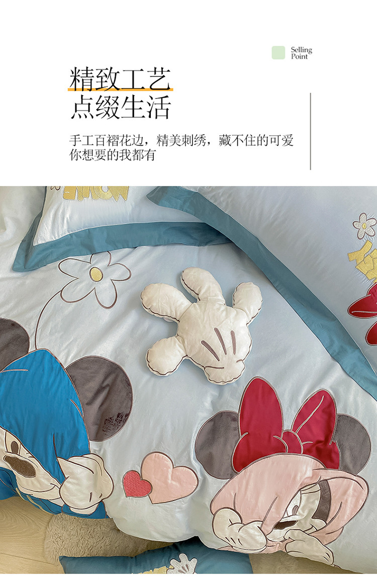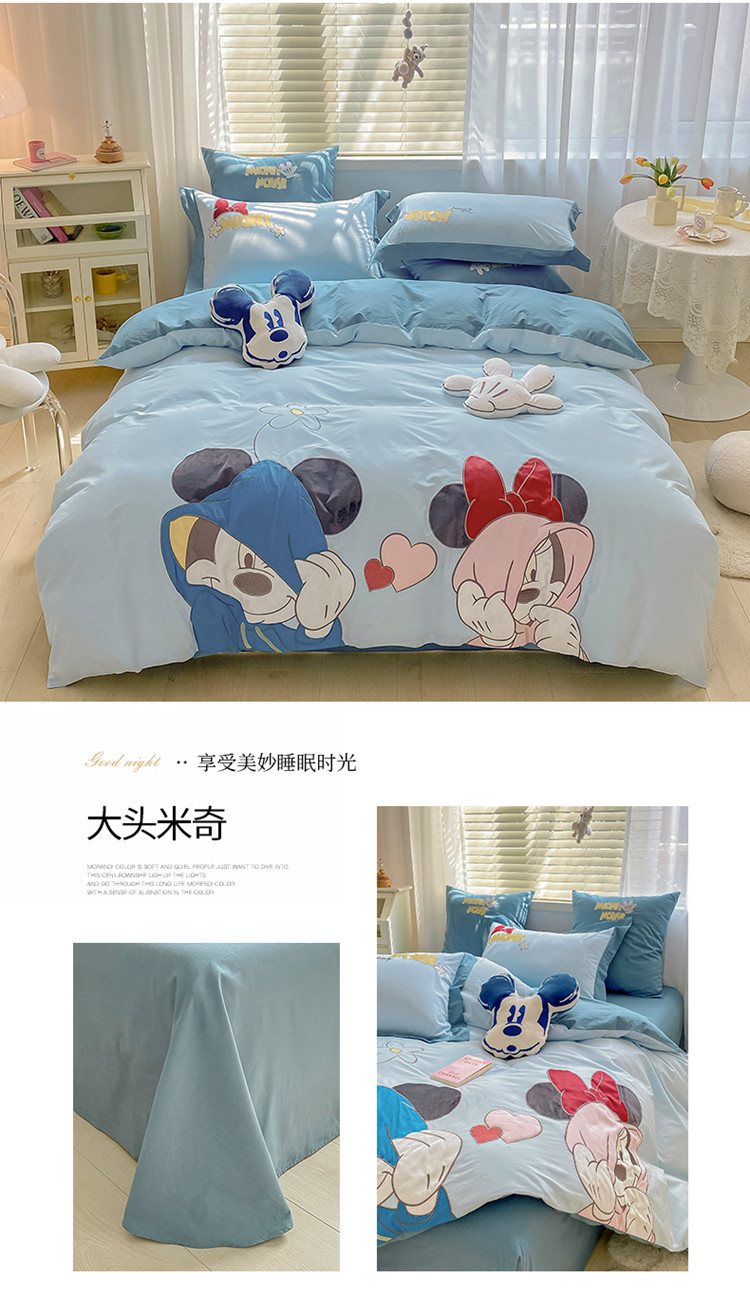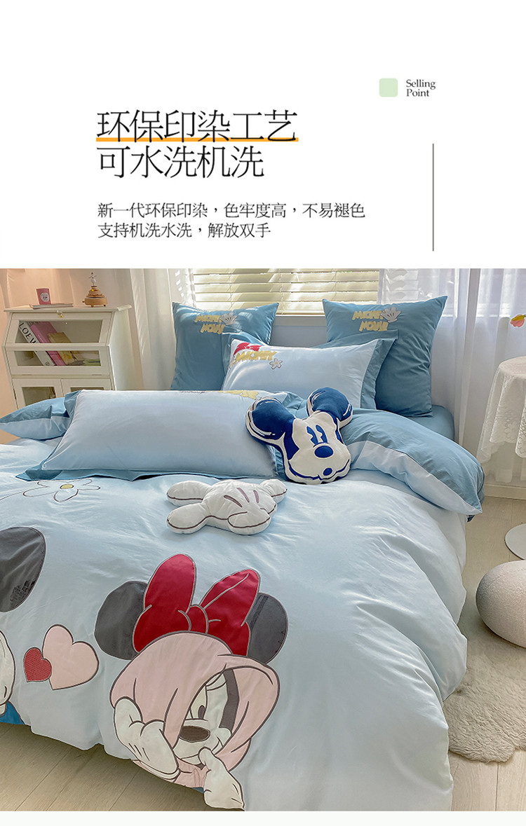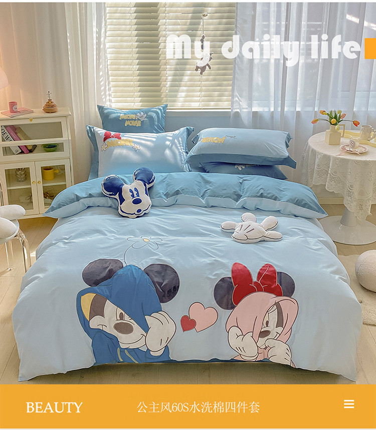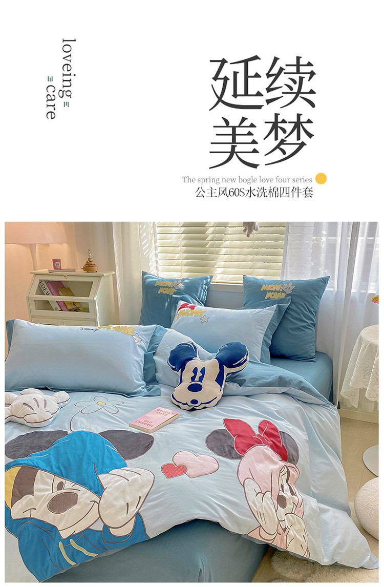 佰亿莱2024新款公主风60s水洗棉四件套迪士尼授权大头米奇