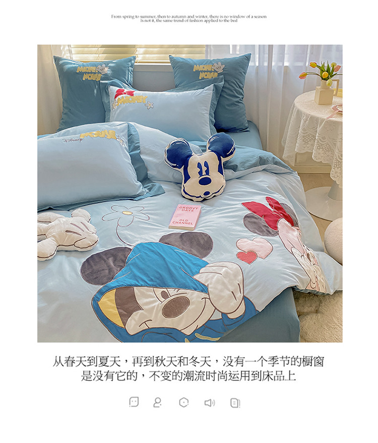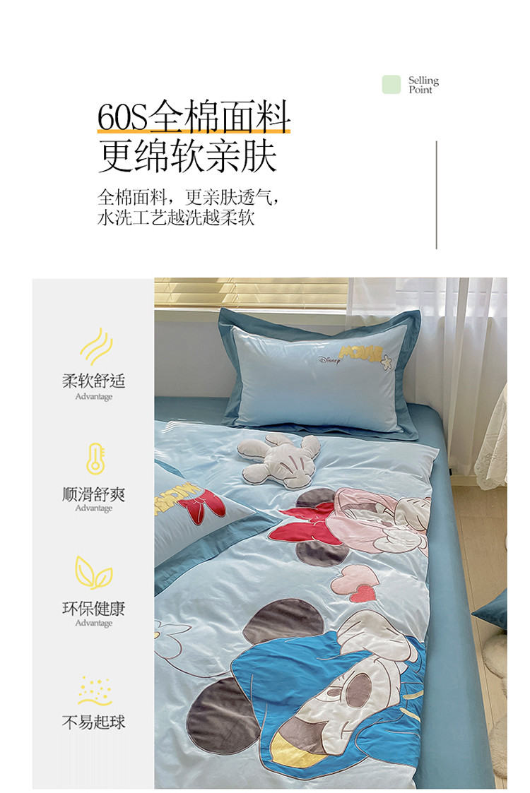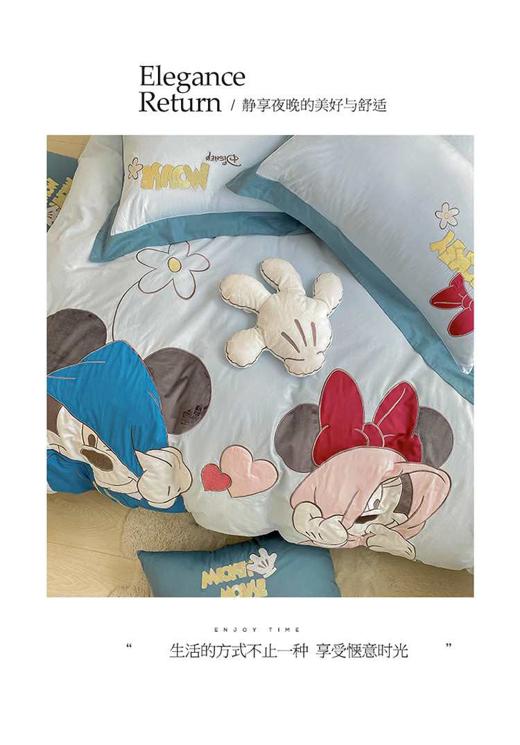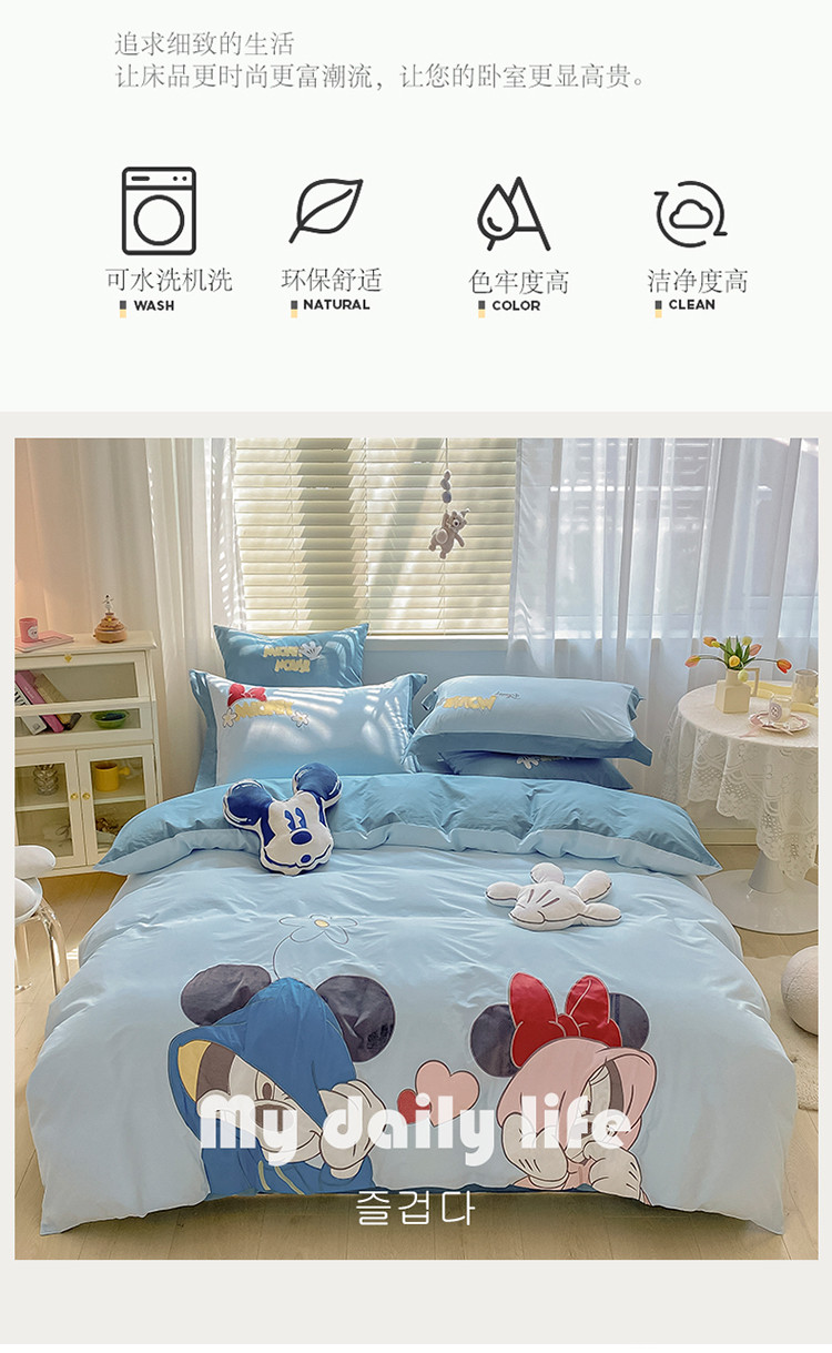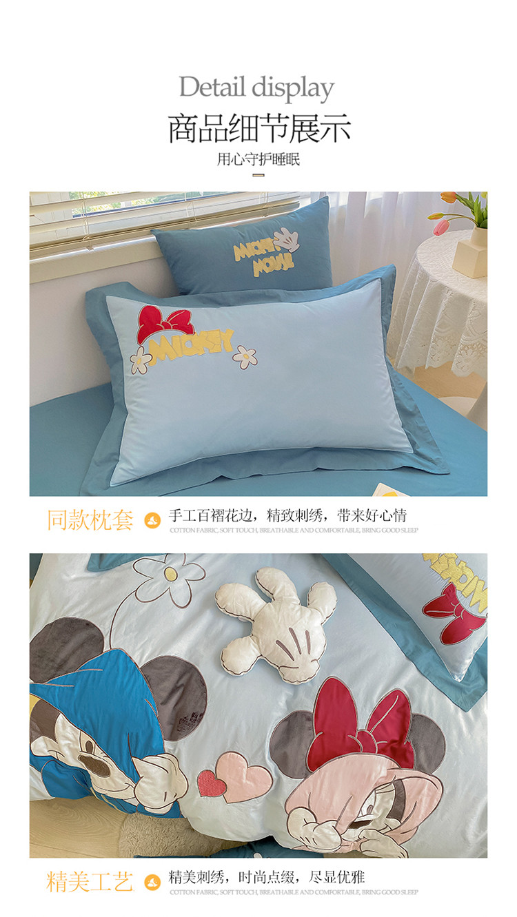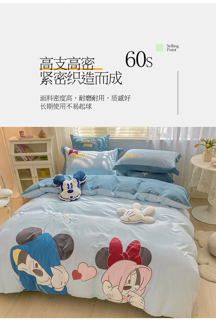 佰亿莱2024新款公主风60s水洗棉四件套迪士尼授权大头米奇