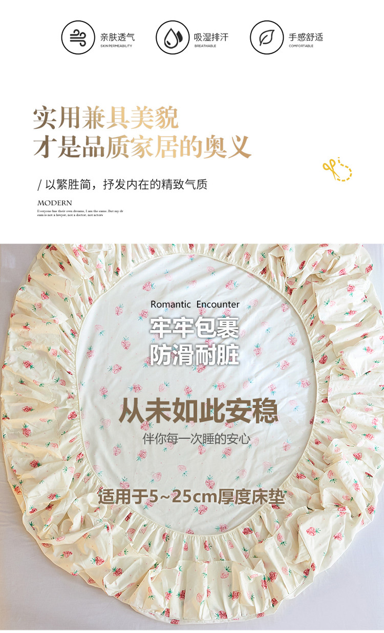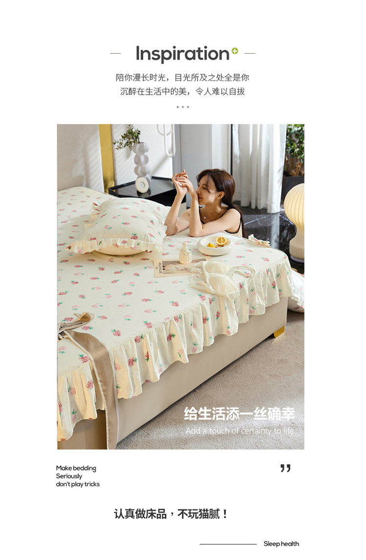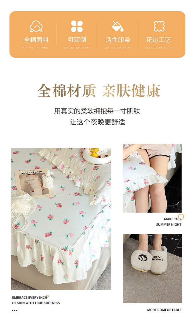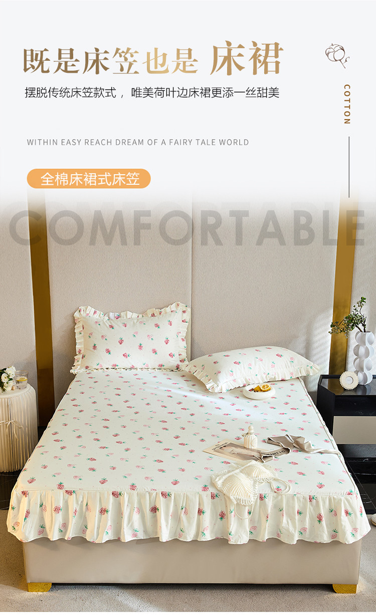 商品名称:铭动家纺 2023新款纯棉单层花边床笠 初恋