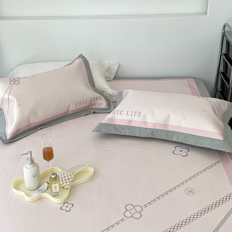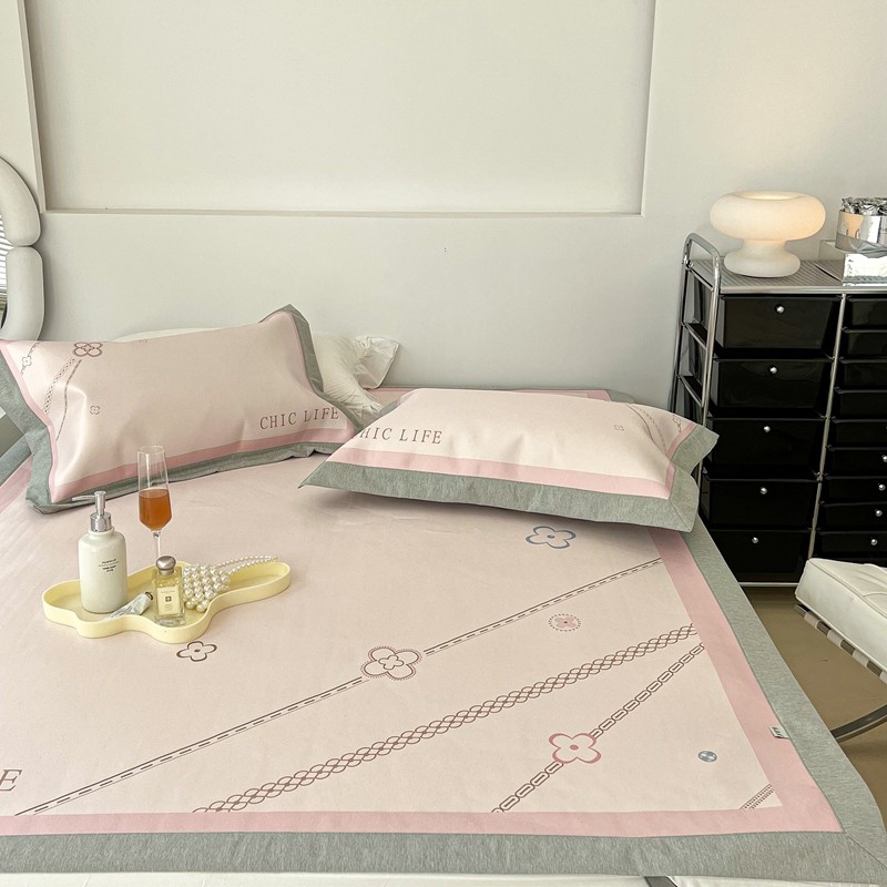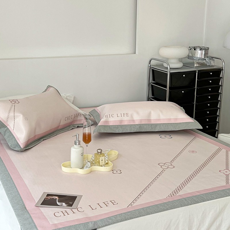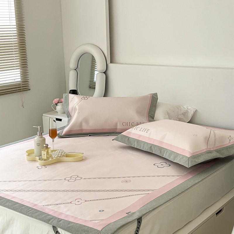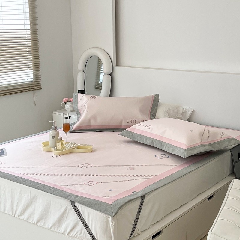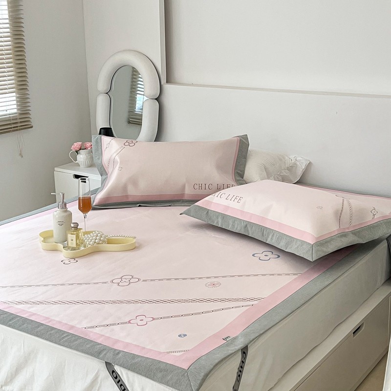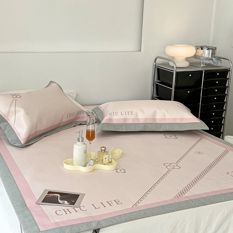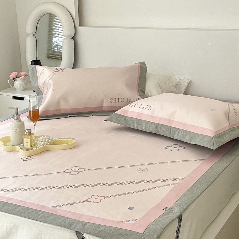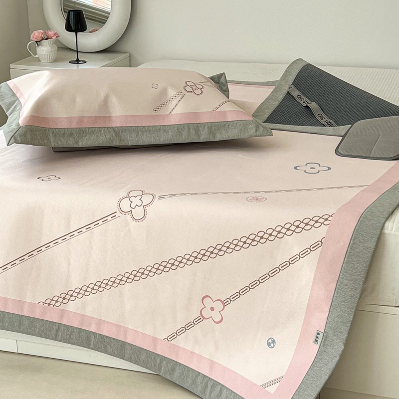 昔可 2022新款大版数码水洗冰沐丝凉席 幸运花链粉