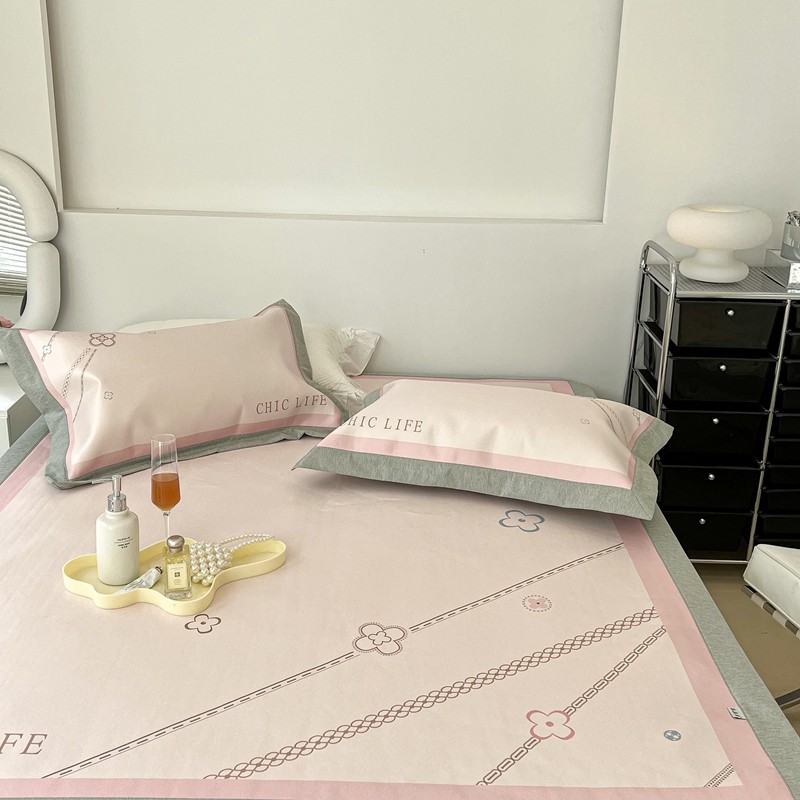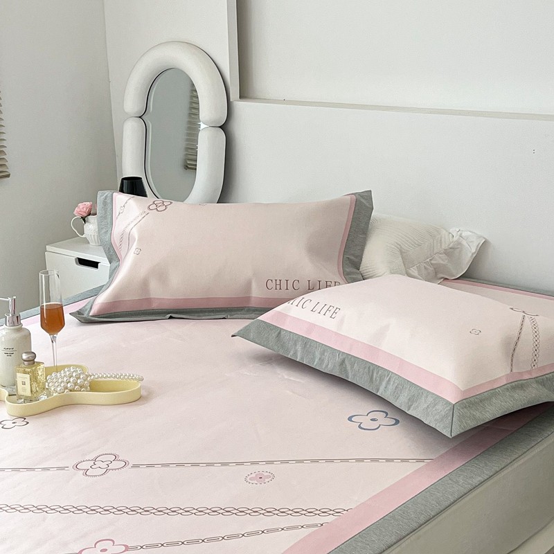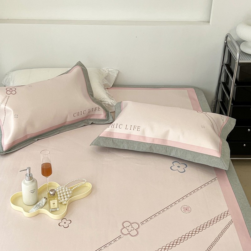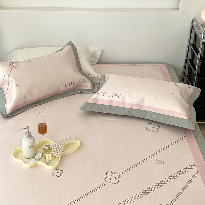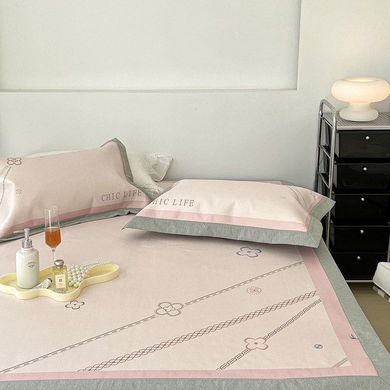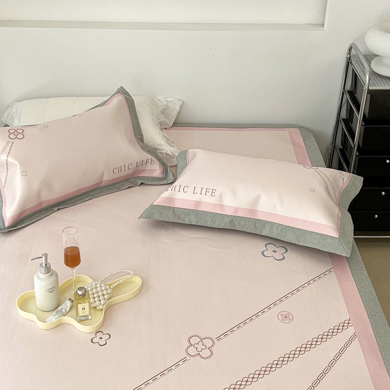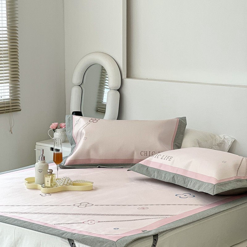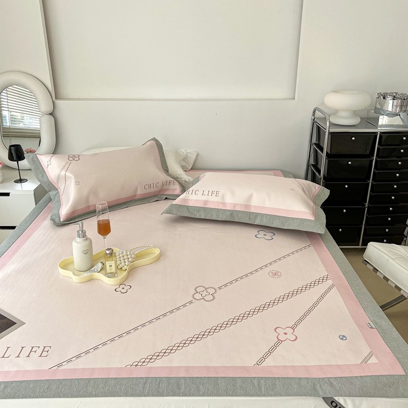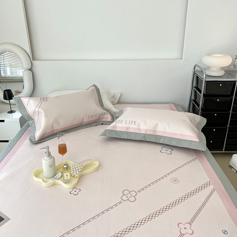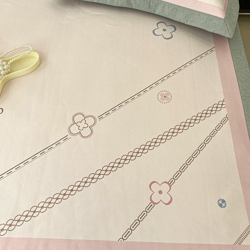 昔可 2022新款大版数码水洗冰沐丝凉席 幸运花链粉