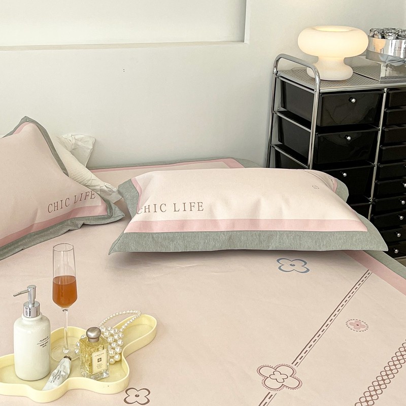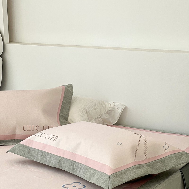 (总)昔可家纺 2023新款双层纱枕头绑带版四件套,橙花,粉粉馥芮,莫奈紫,英国梨