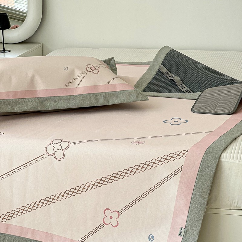 商品名称:昔可 2022新款大版数码水洗冰沐丝凉席 幸运花链粉