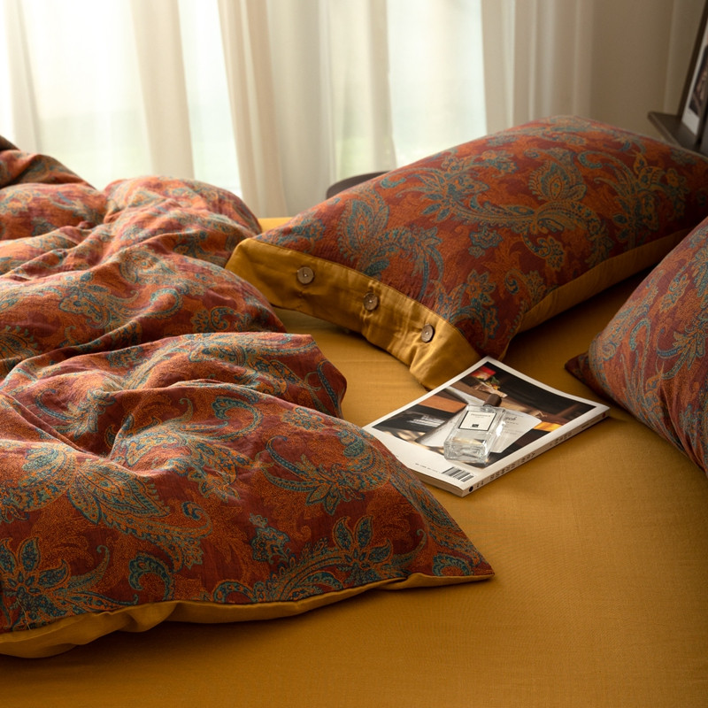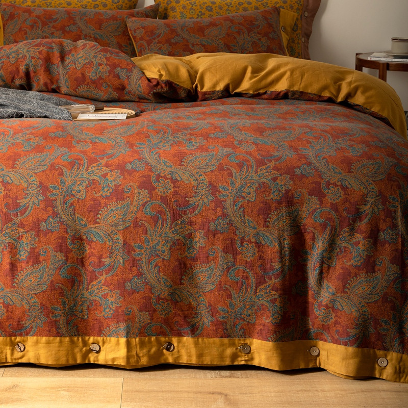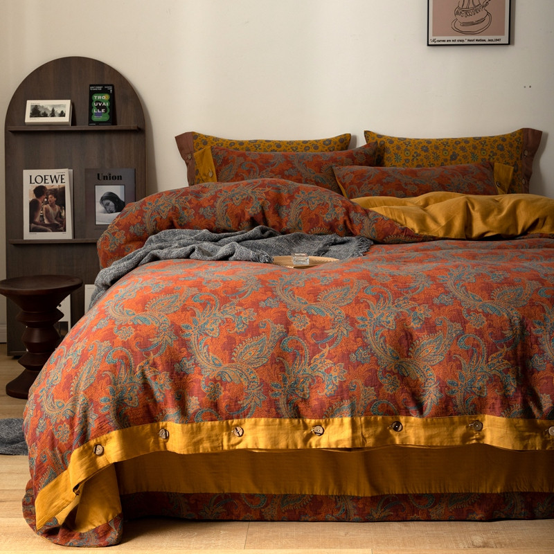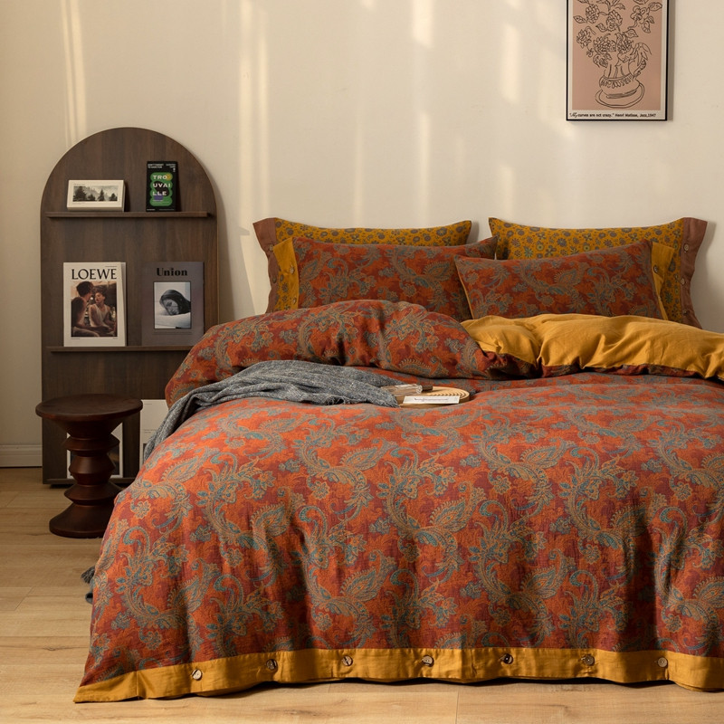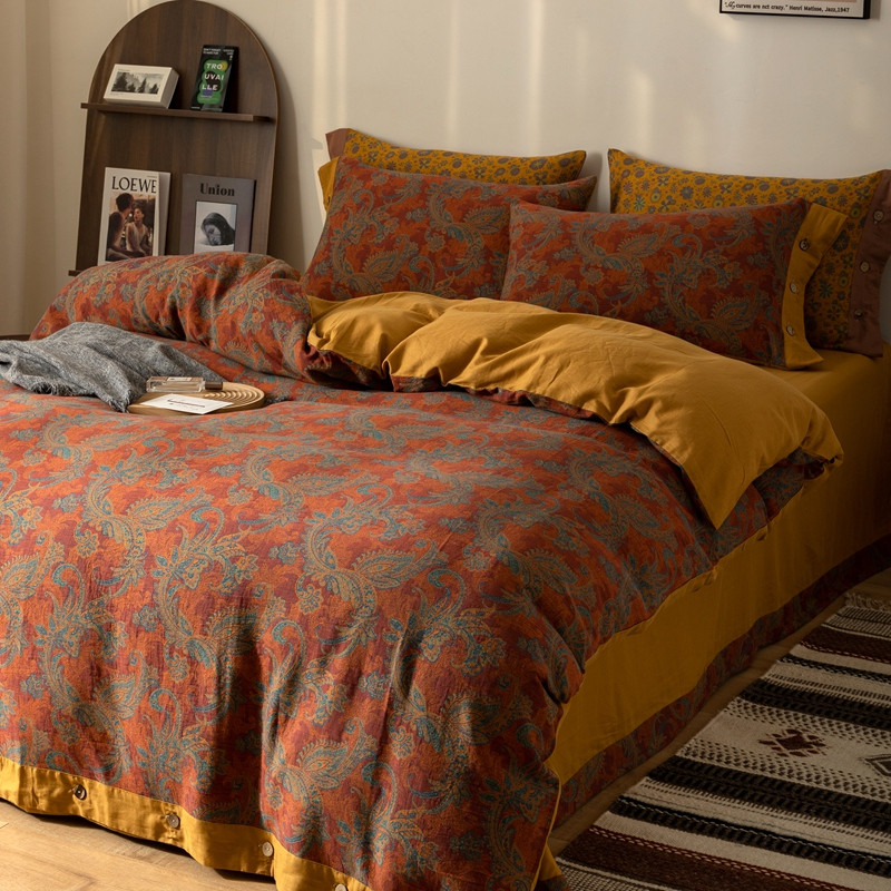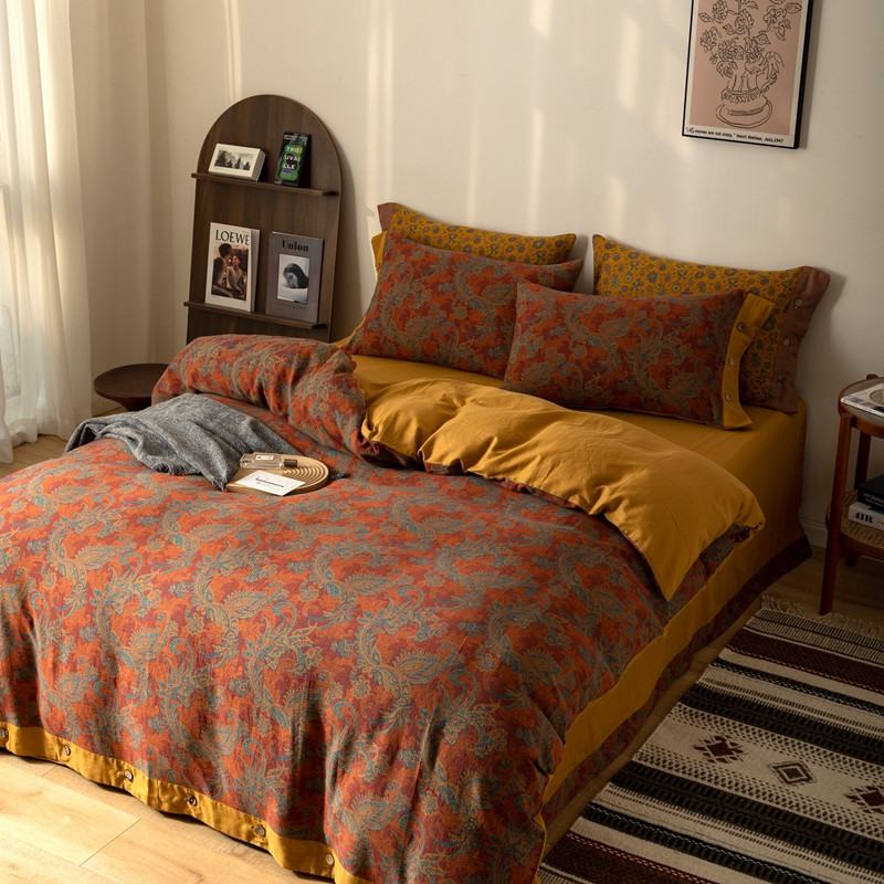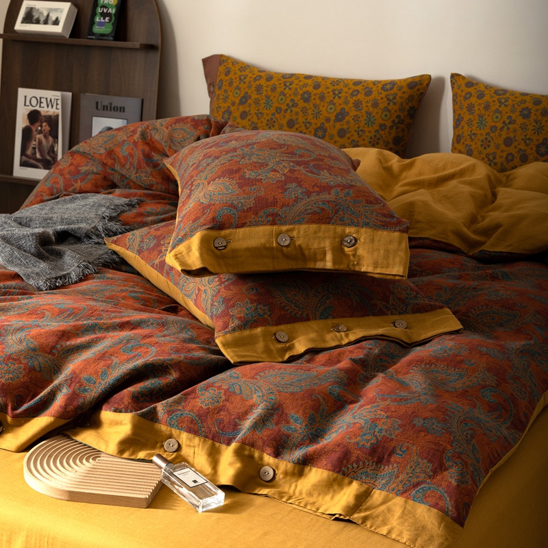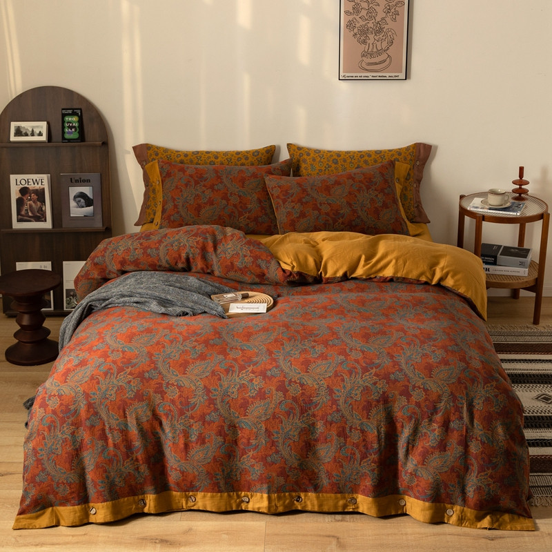 凡客 2022新款全棉A类色织双层纱纽扣款四件套 爱丽尔
