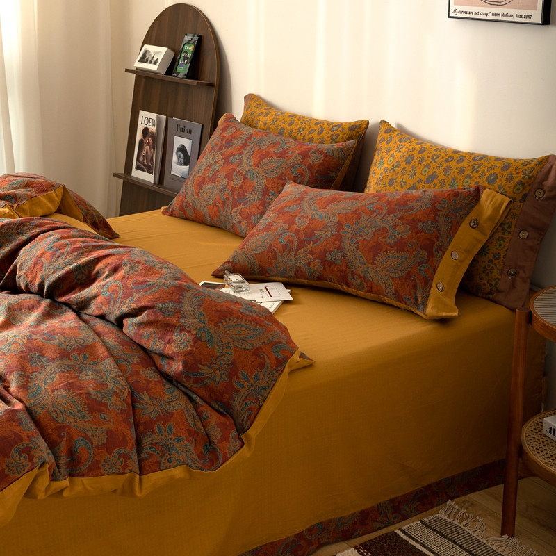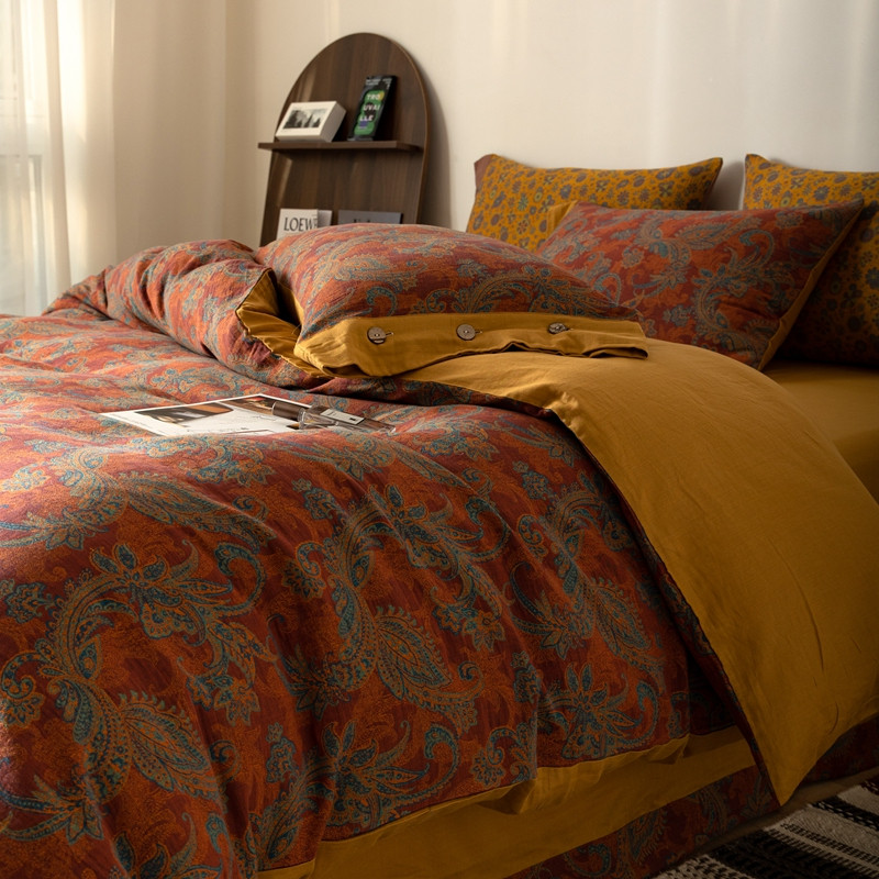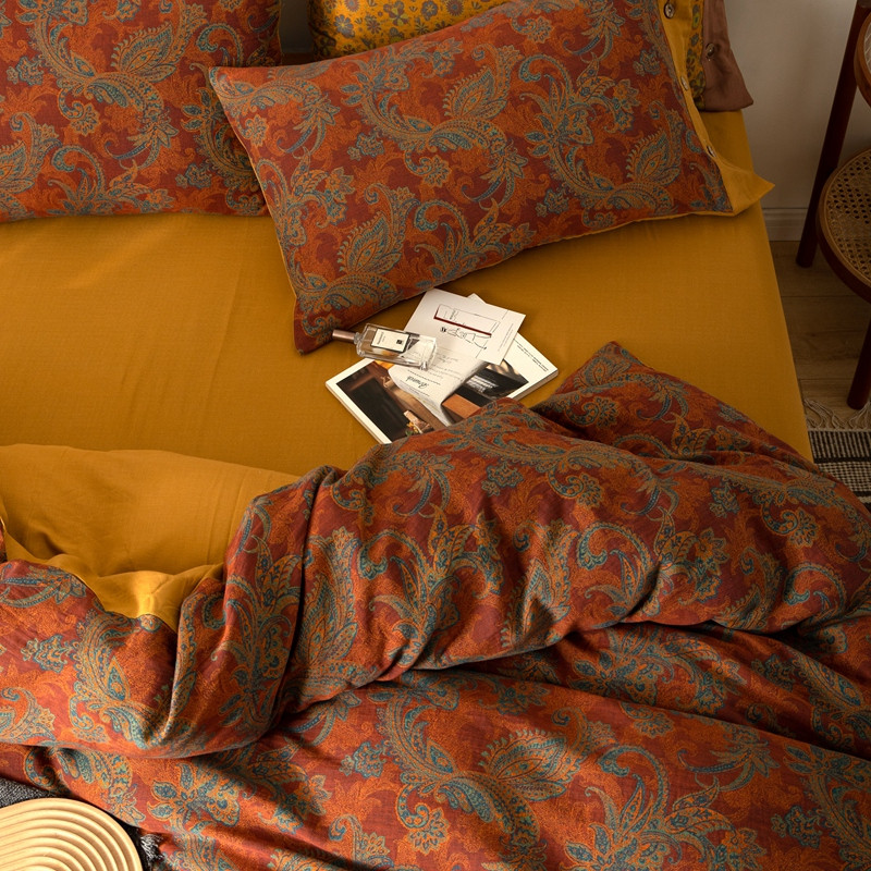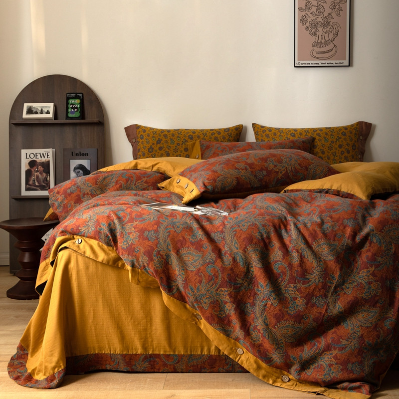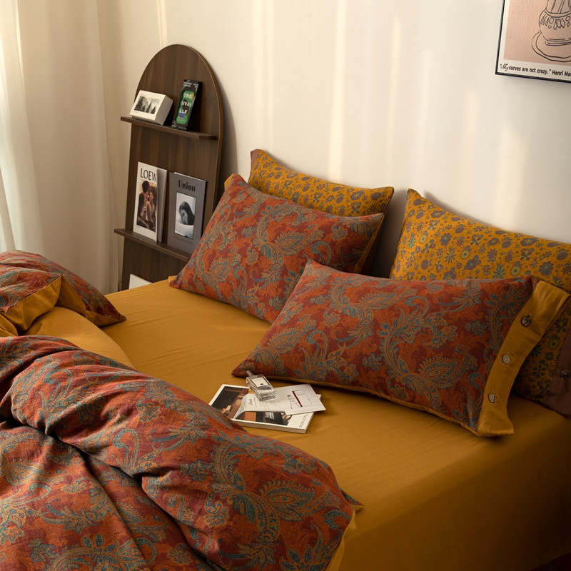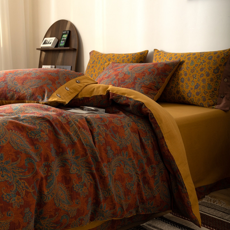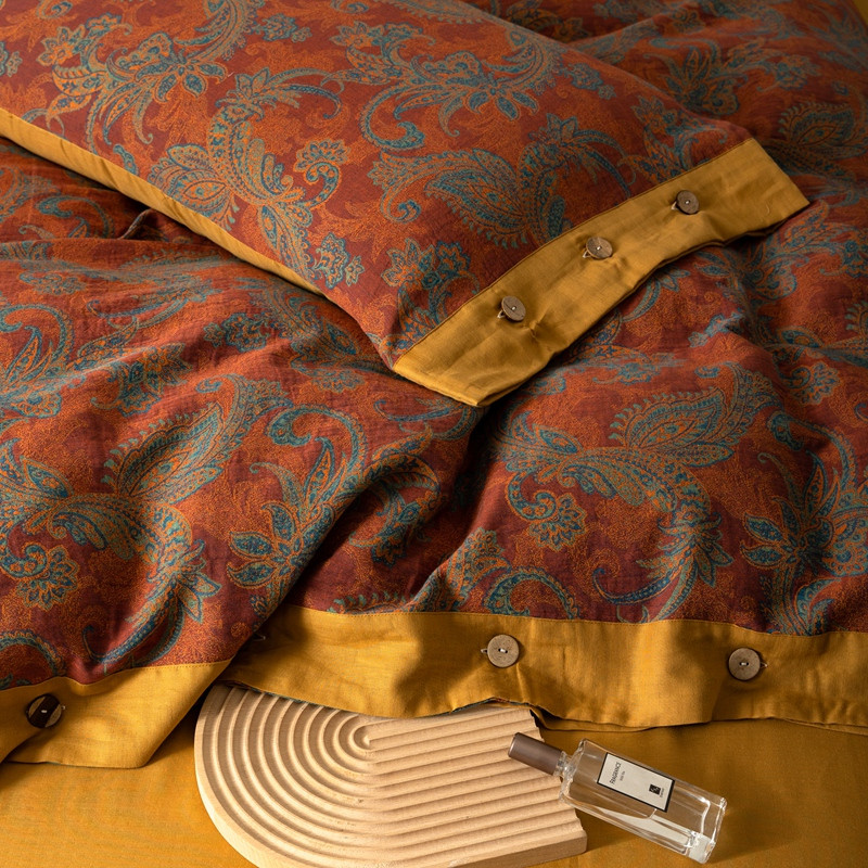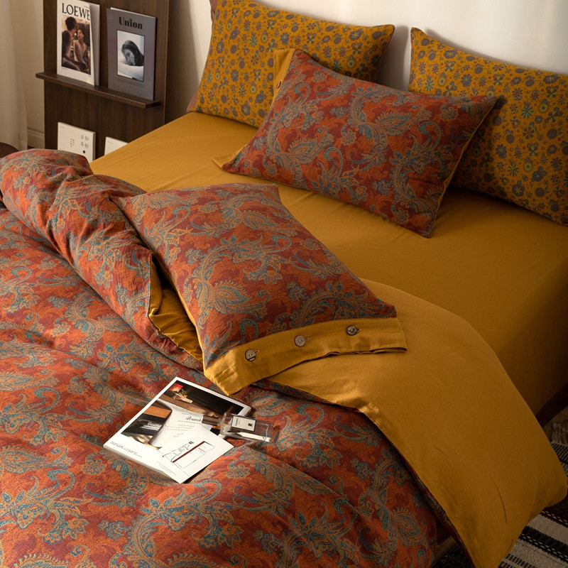 凡客 2022新款全棉A类色织双层纱纽扣款四件套 爱丽尔