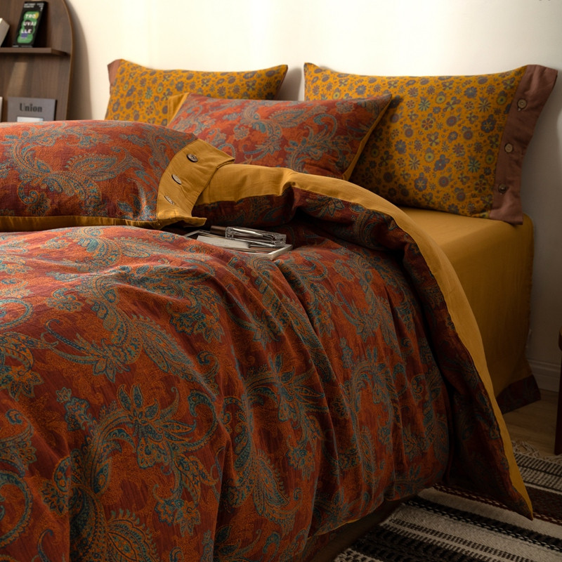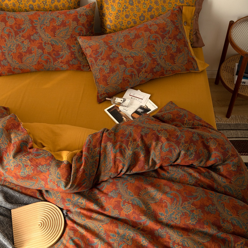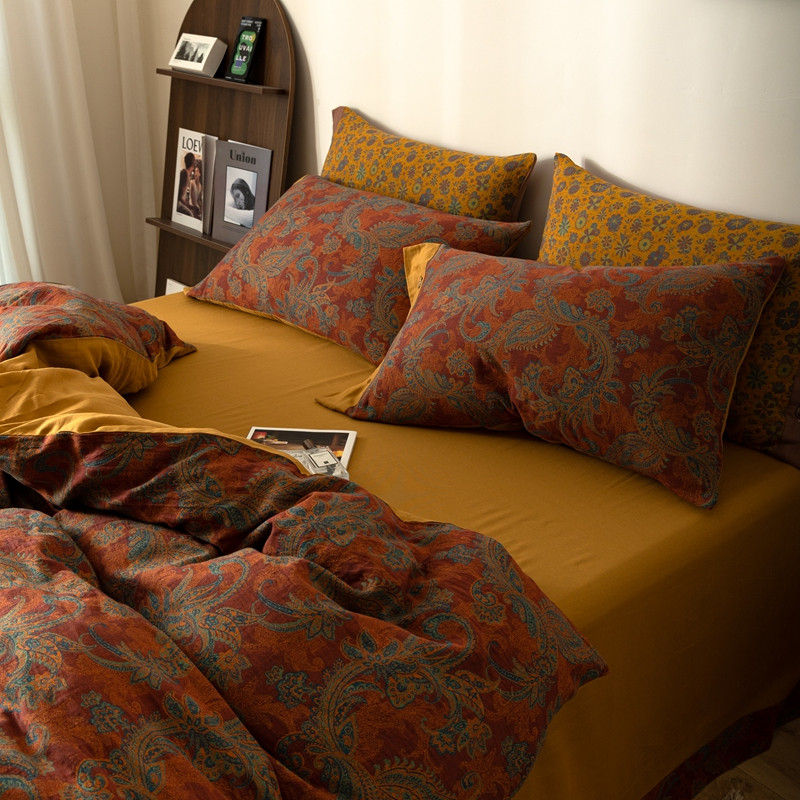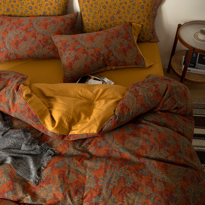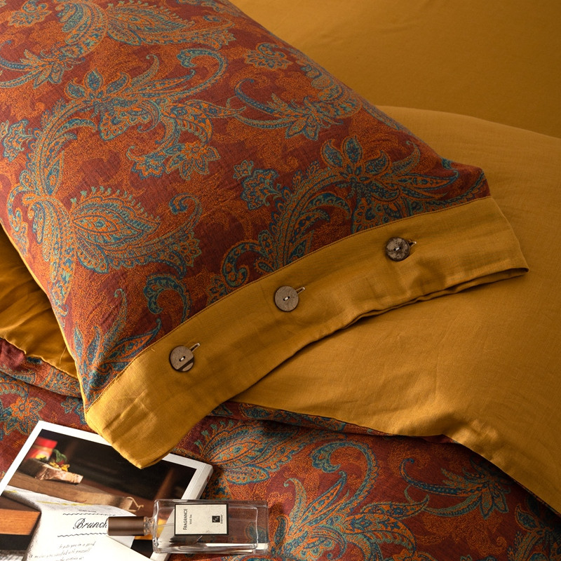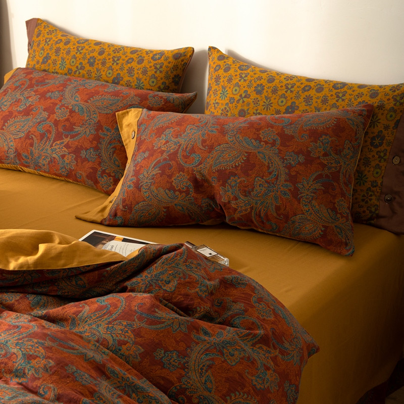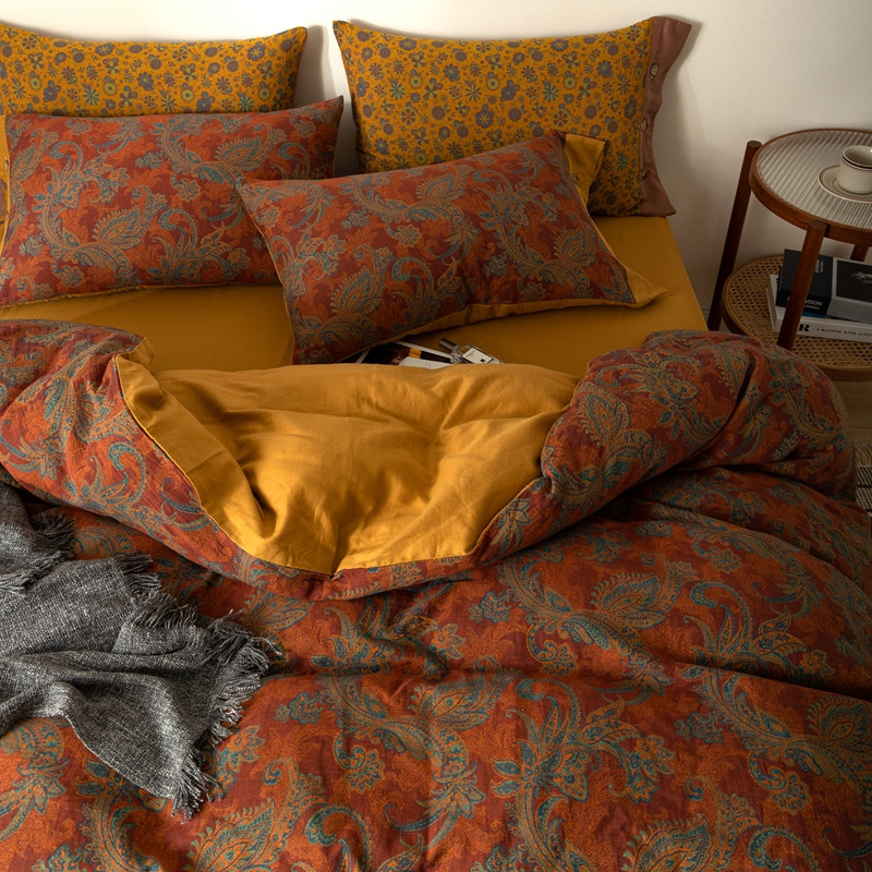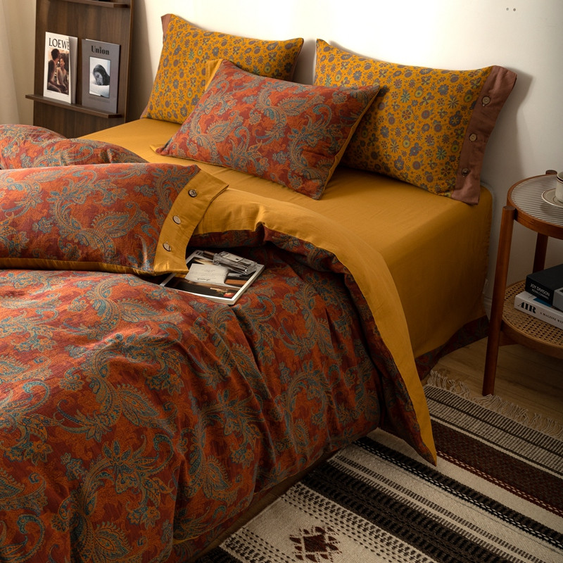 凡客 2022新款全棉A类色织双层纱纽扣款四件套 爱丽尔