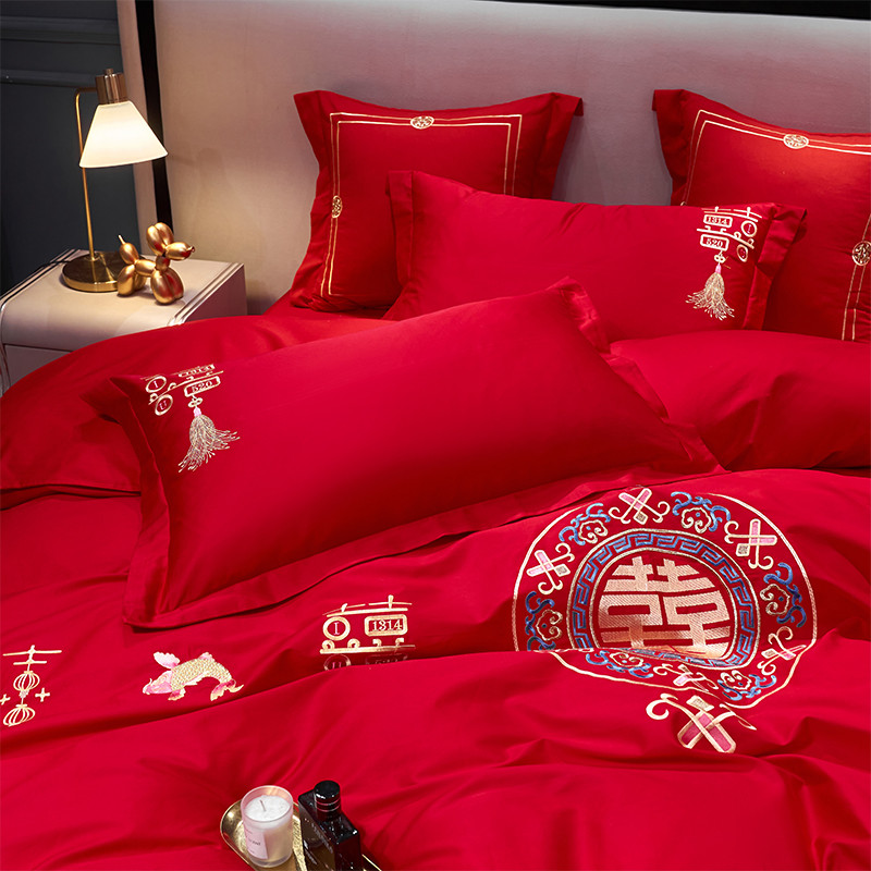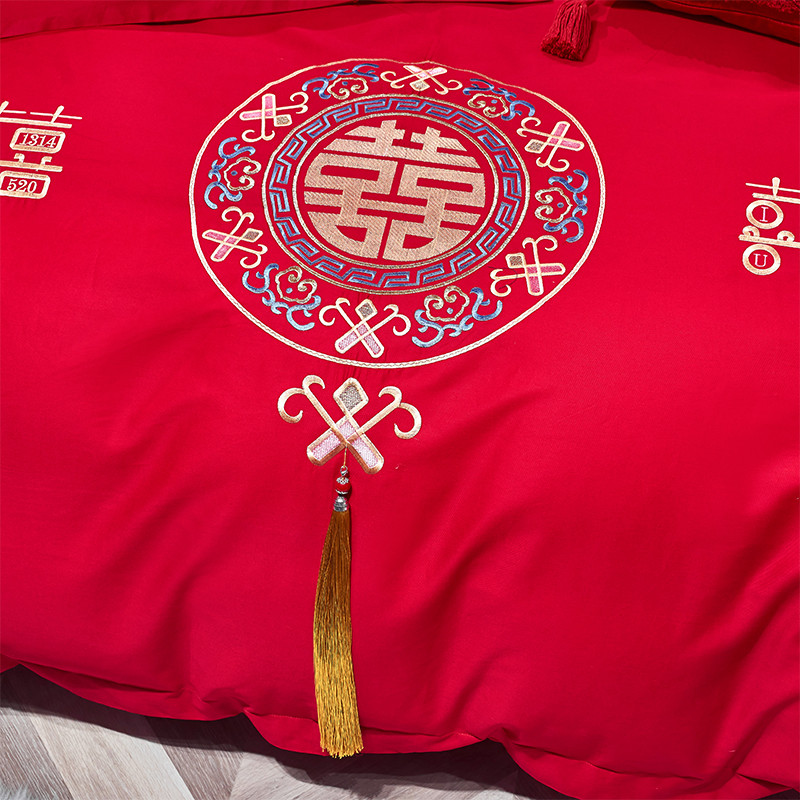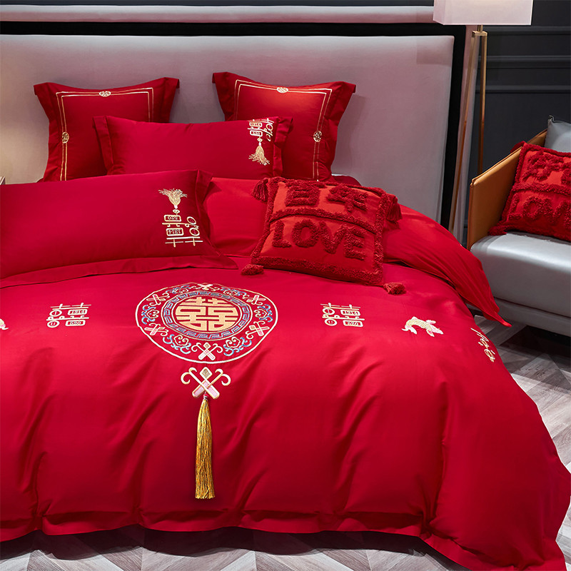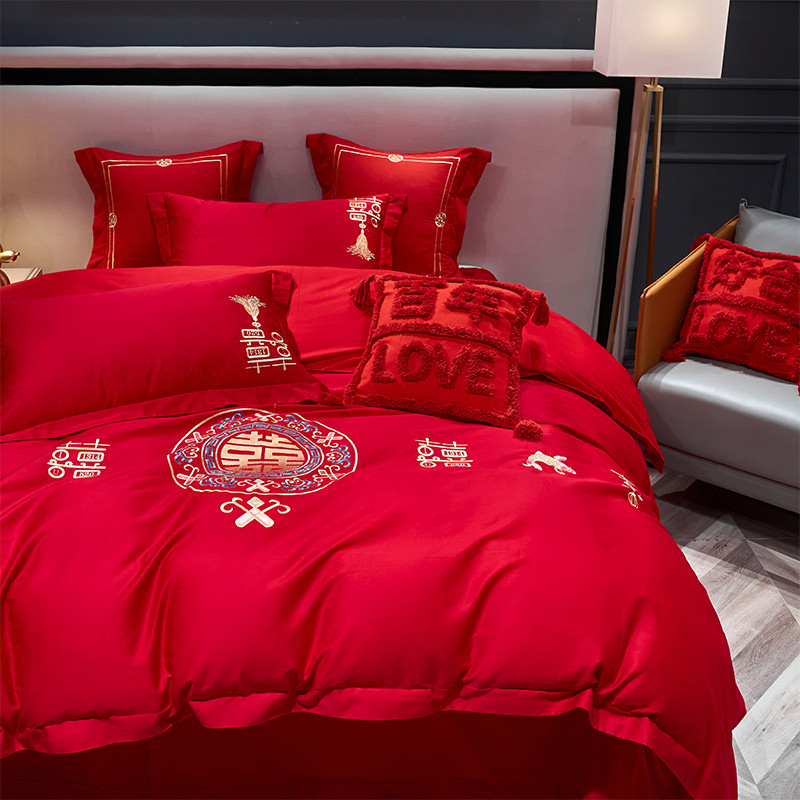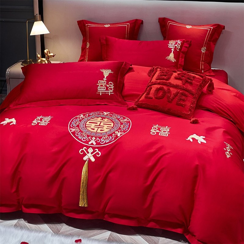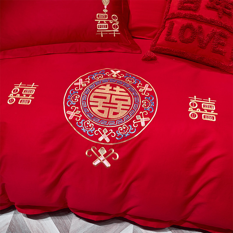 (总)用心 2026年新款双面长绒棉提花婚庆刺绣四件套,喜上喜,禧爱,吉祥